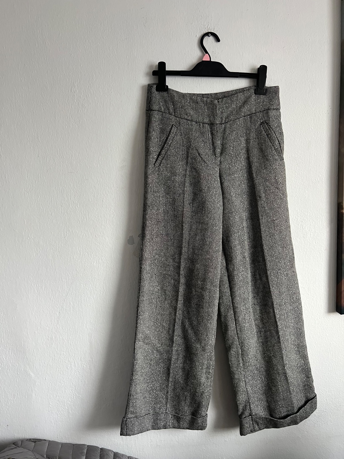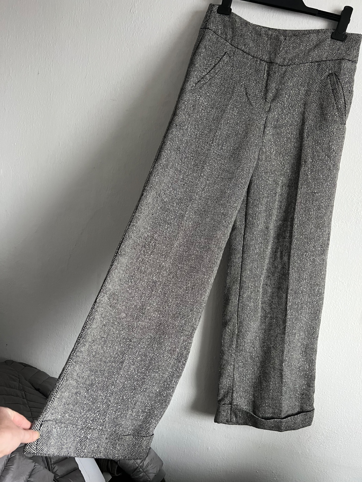 Zimne hrubsie tvidove nohavice s jemnou striebornou nitou 38, pas cca 39x2