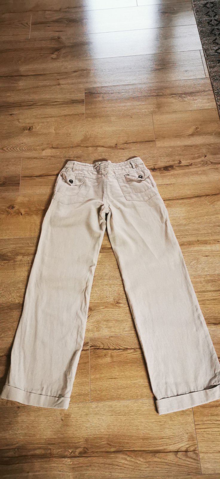 Krásne lanové nohavice, veľkosť S. Dĺžka 94,5cm,pas 36 cm
