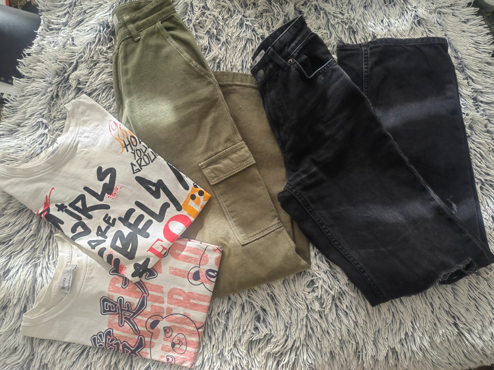 Farba je krásna army zelená, na foto sa nedá dobre zachytiť. Krásne sedia na postave.