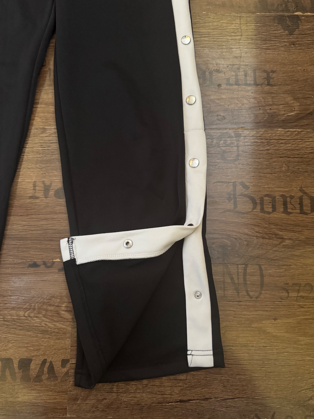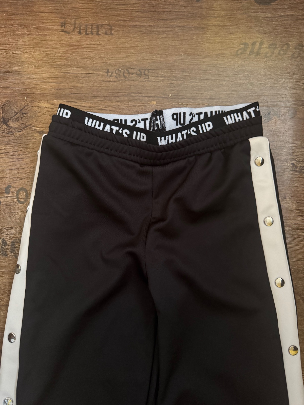 Ponúkam štýlové čierno-biele tepláky na boku s cvokmi, ktoré sa zdola na 3 cvoky rozopínajú. V pásé gumka. Veľkosť uvedená 146/152 na 10-12 rokov a značka je Page One Young. Boli pár krát oblečené, žiaľ rýchlo sme vyrástli, takže sú vo výbornom stave. Poštovné podľa taríf.