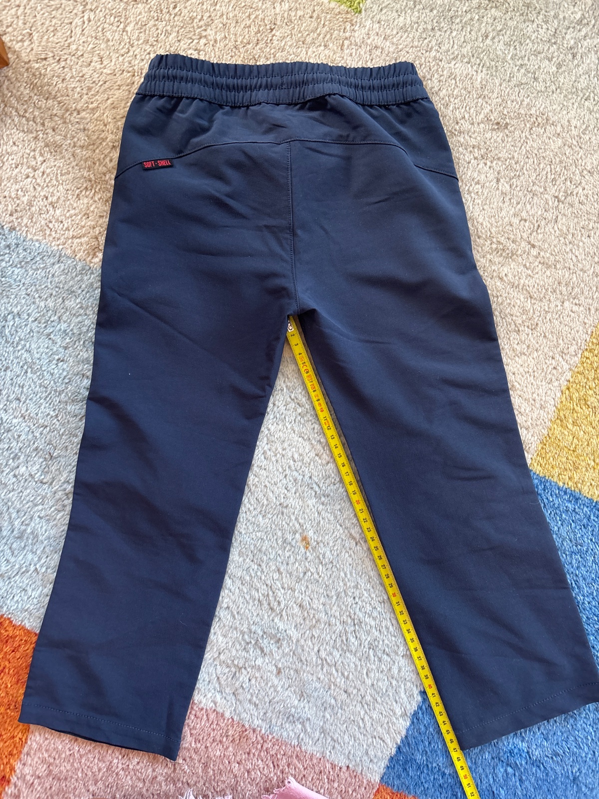 Predam príležitostne používané tenké softshellky na turistiku po jednom dieťati. Mali sme ich viac. Na jednej nohe je svetlejšia čiara, nie zachytené ani pofarbené, netuším ako to vzniklo. Farba pekna sýta.