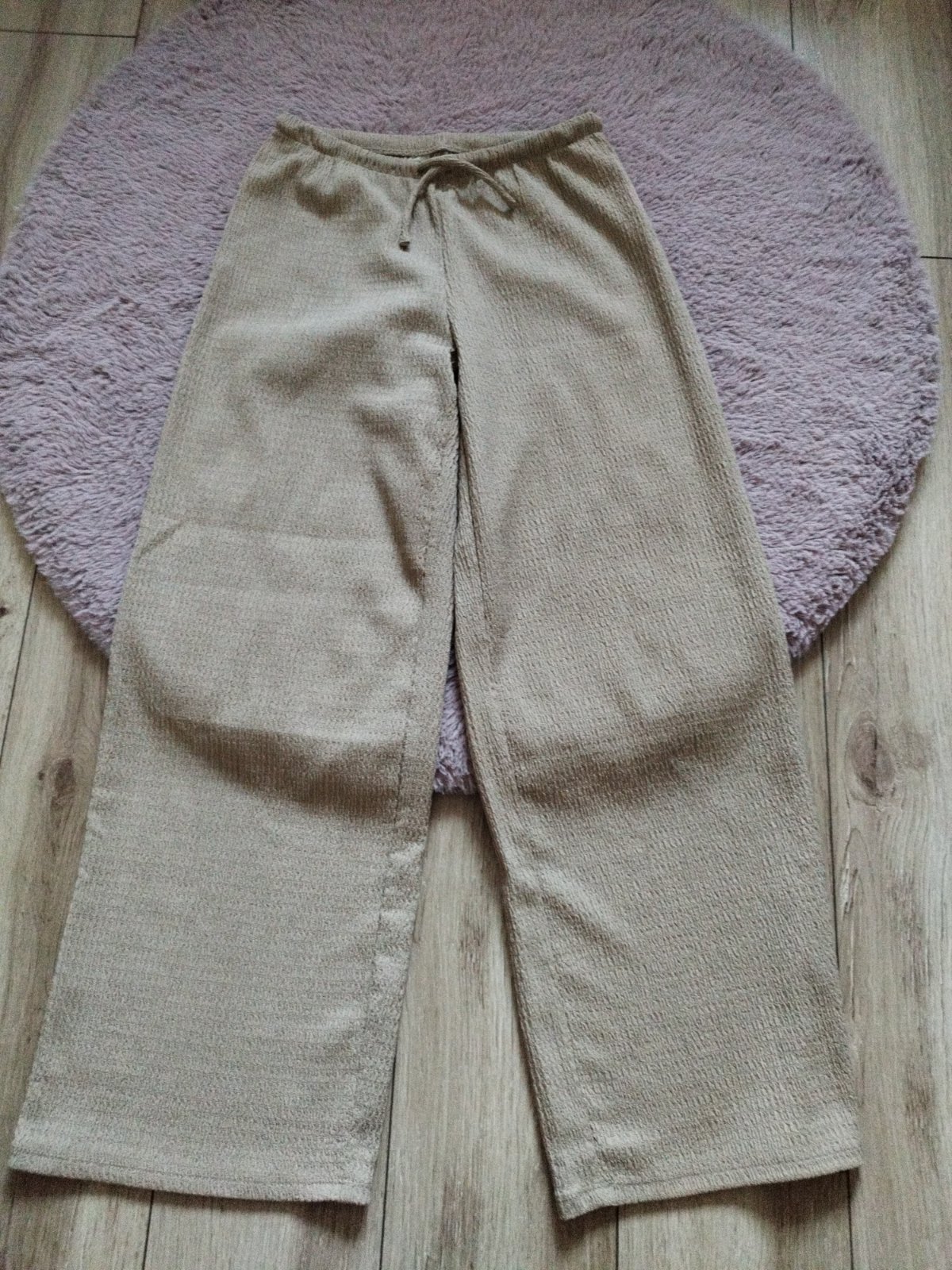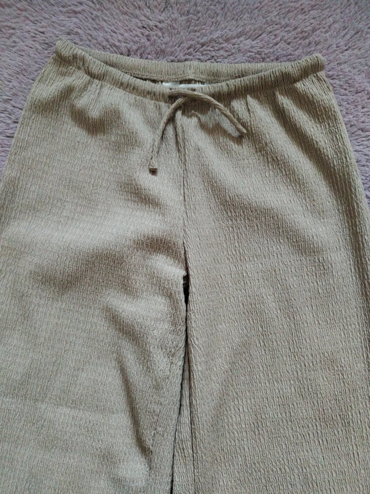 Krásne letné nohavice z krčeného džerseja, veľkosť 146, veľmi zachovalé, dĺžka 88cm, v páse funkčná šnúrka