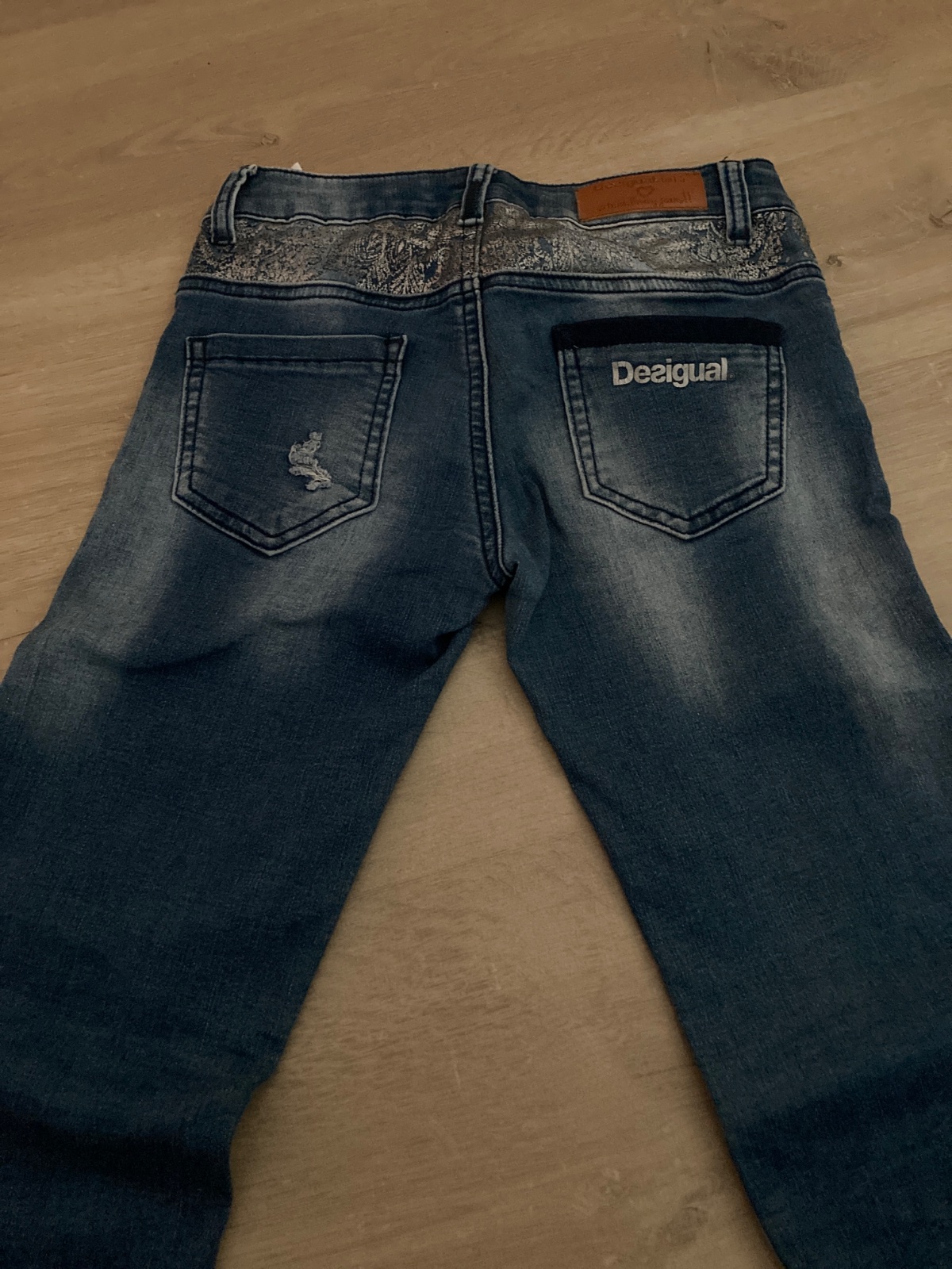 Predám úplne nové nenosene (bez visacky) rifle Desigual s meniacimi obrázkami hviezd, veľkosť 11 - 12 y, 146-152 cm