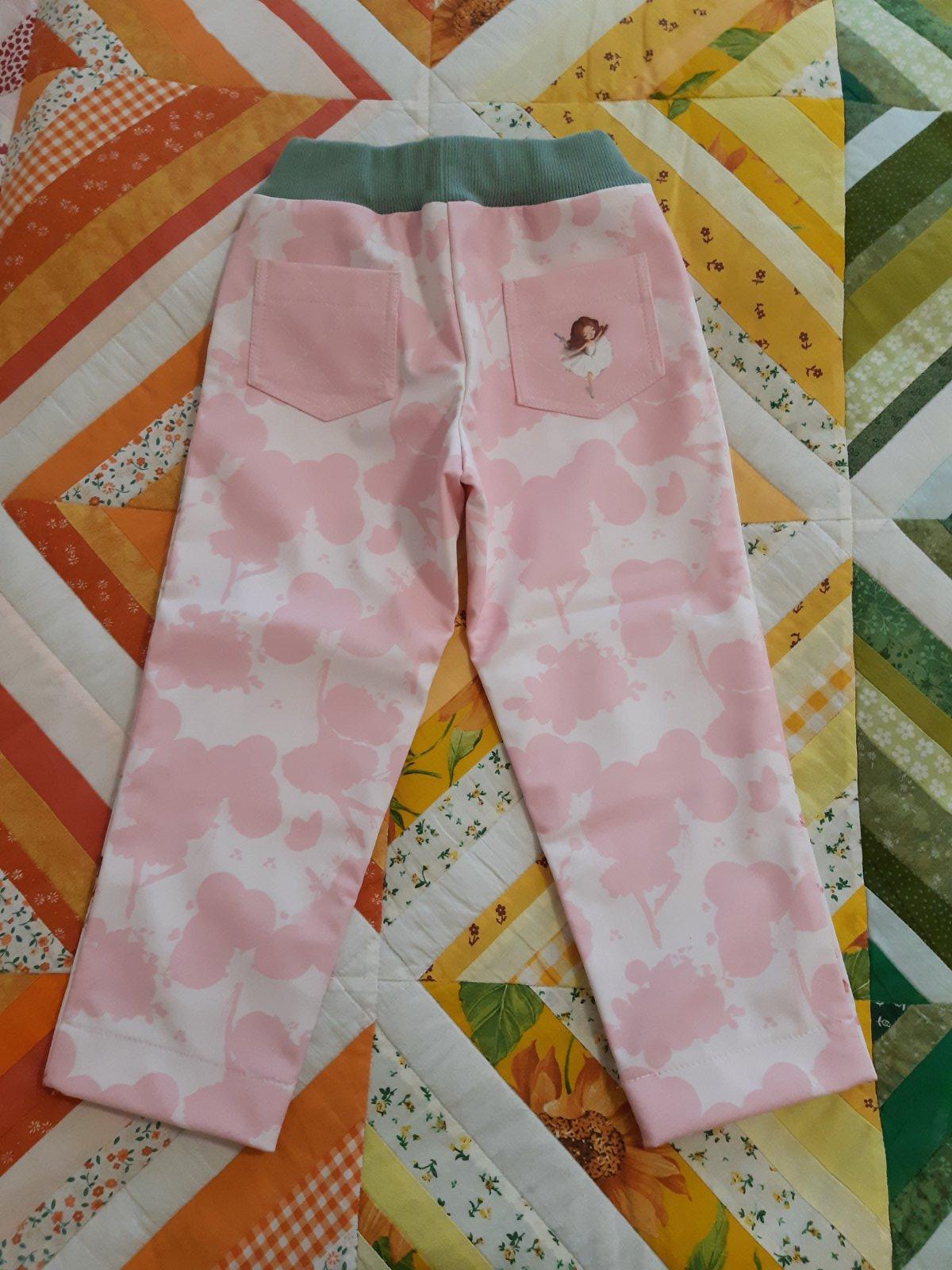 Softshelove nohavice usite z hotoveho panelu od firmy Takoy. Softshell je zimny, no je tensi. Dostali sme viac nohavic, preto sme ich nestihli mat na sebe ani raz. Super riesenie do skolky na zimu na pancusky ci leginy. Velkost 98/104.