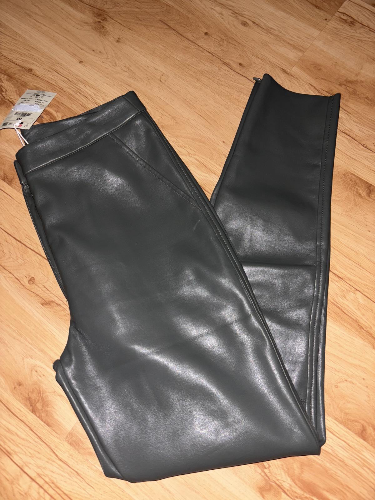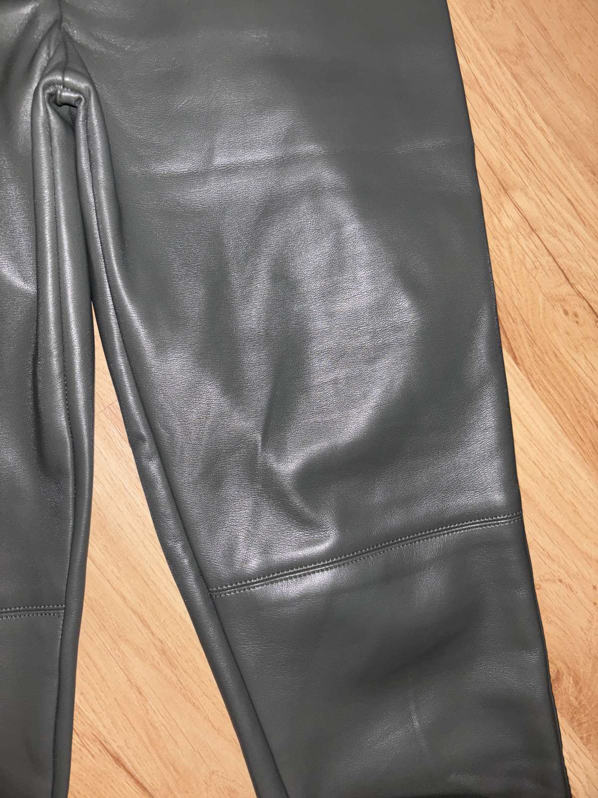 S visačkou, olivové, pružné, úzky strih,vysoký pás, dole zips, veľkosť M, skôr S, pás 36 cm, dĺžka 96 cm, vnútorná dĺžka 69 cm, sedy 28/39 cm