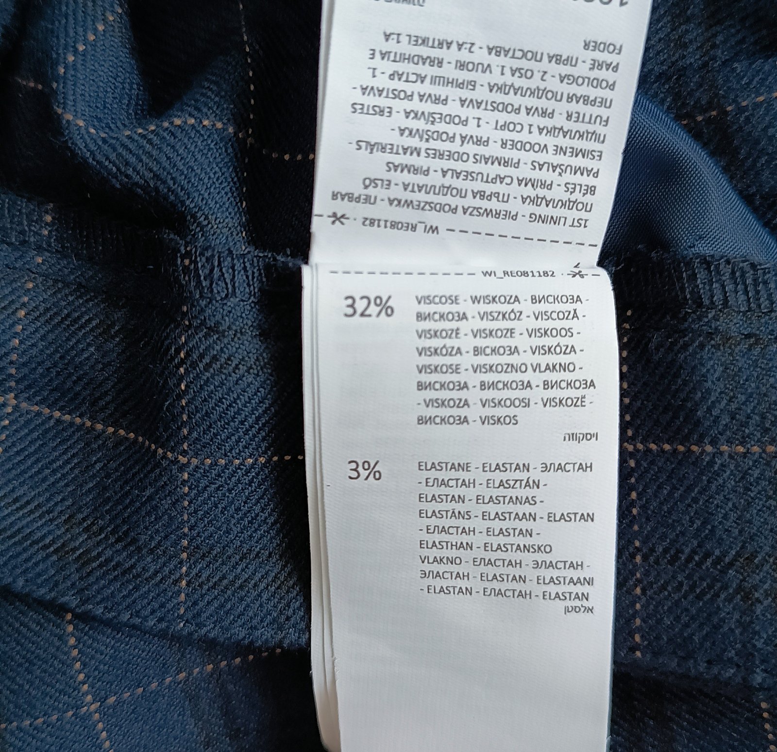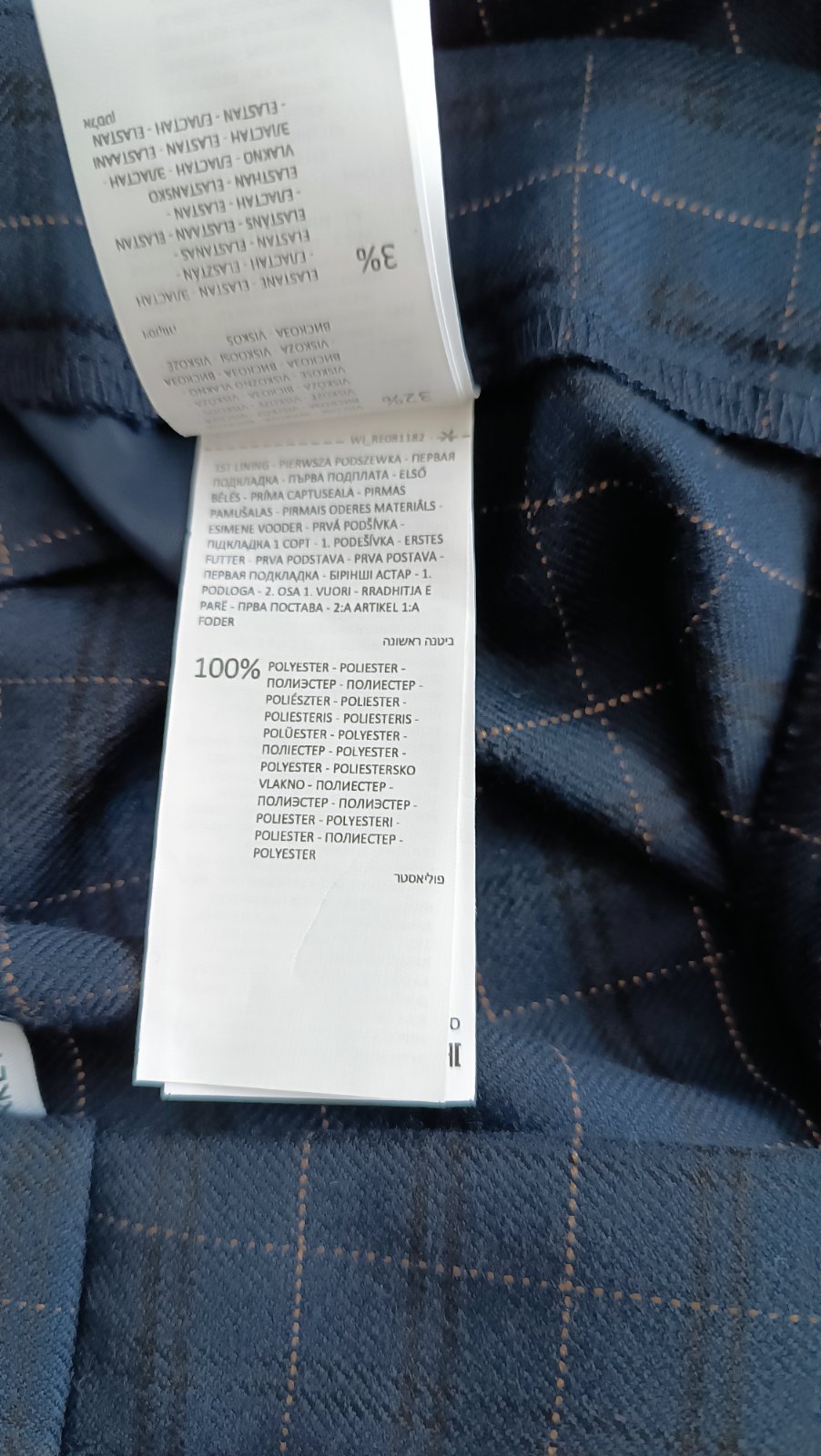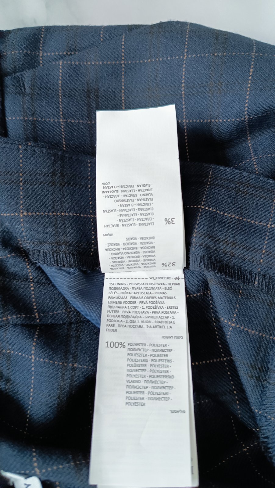 Pás 39cm, dĺžka 92cm, dĺžka od rozkroku 69cm, 65% polyester, 32% viskóza, 3% elastan, vzadu v páse guma, teda sa prispôsobí pásu
