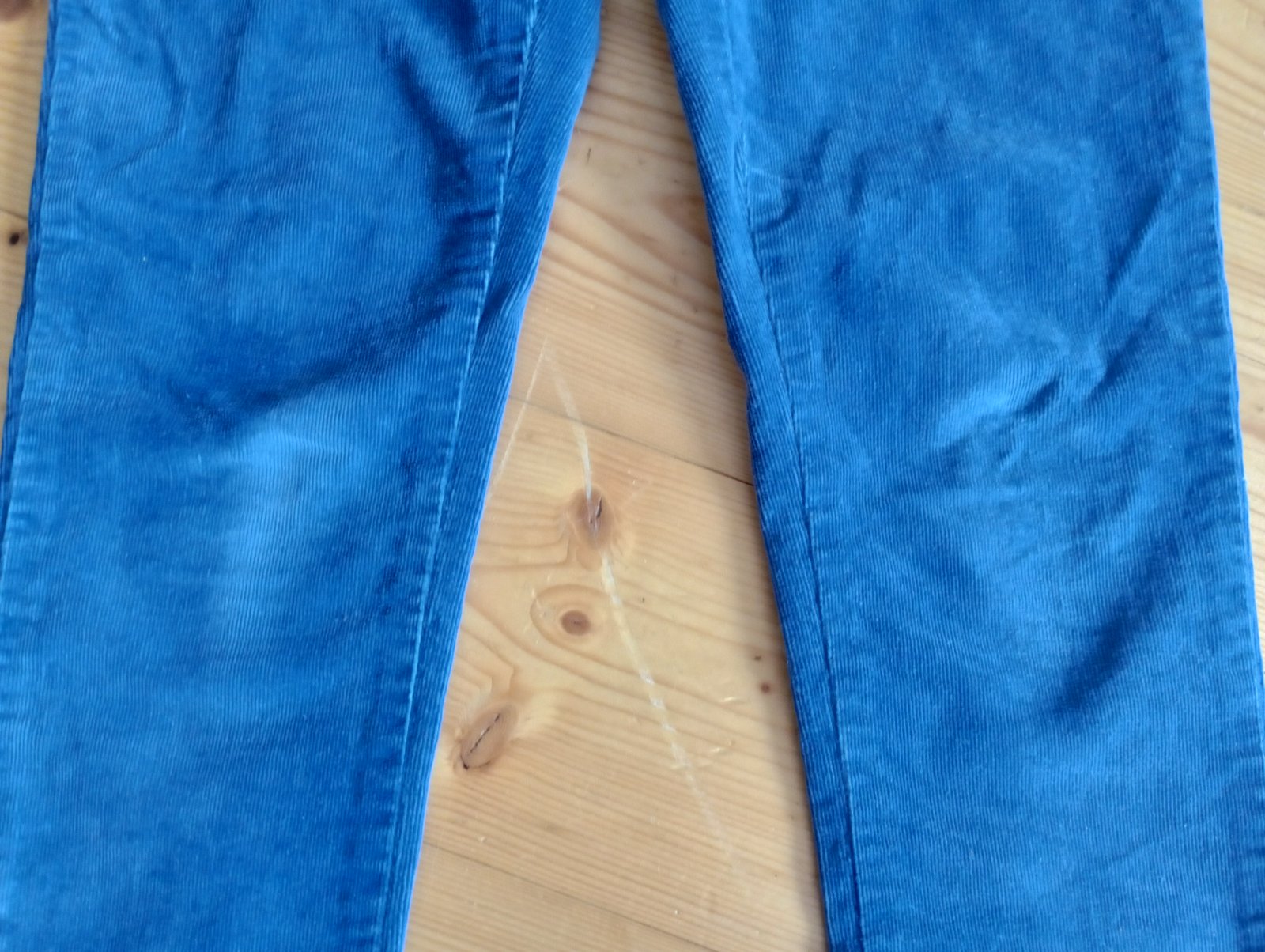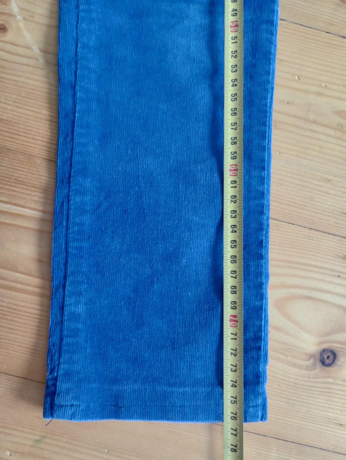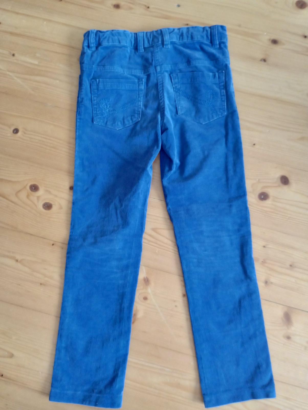 Veľmi dobrý stav, bez vážneho poškodenia. Veľkosť je udaná 152, ale sú menšie, sedia tak na 134. Vhodné na bucľatejšie dievča, pás sa dá regulovať. Farba je veľmi pekná modrá, foťák mi ju nevedel zachytiť.