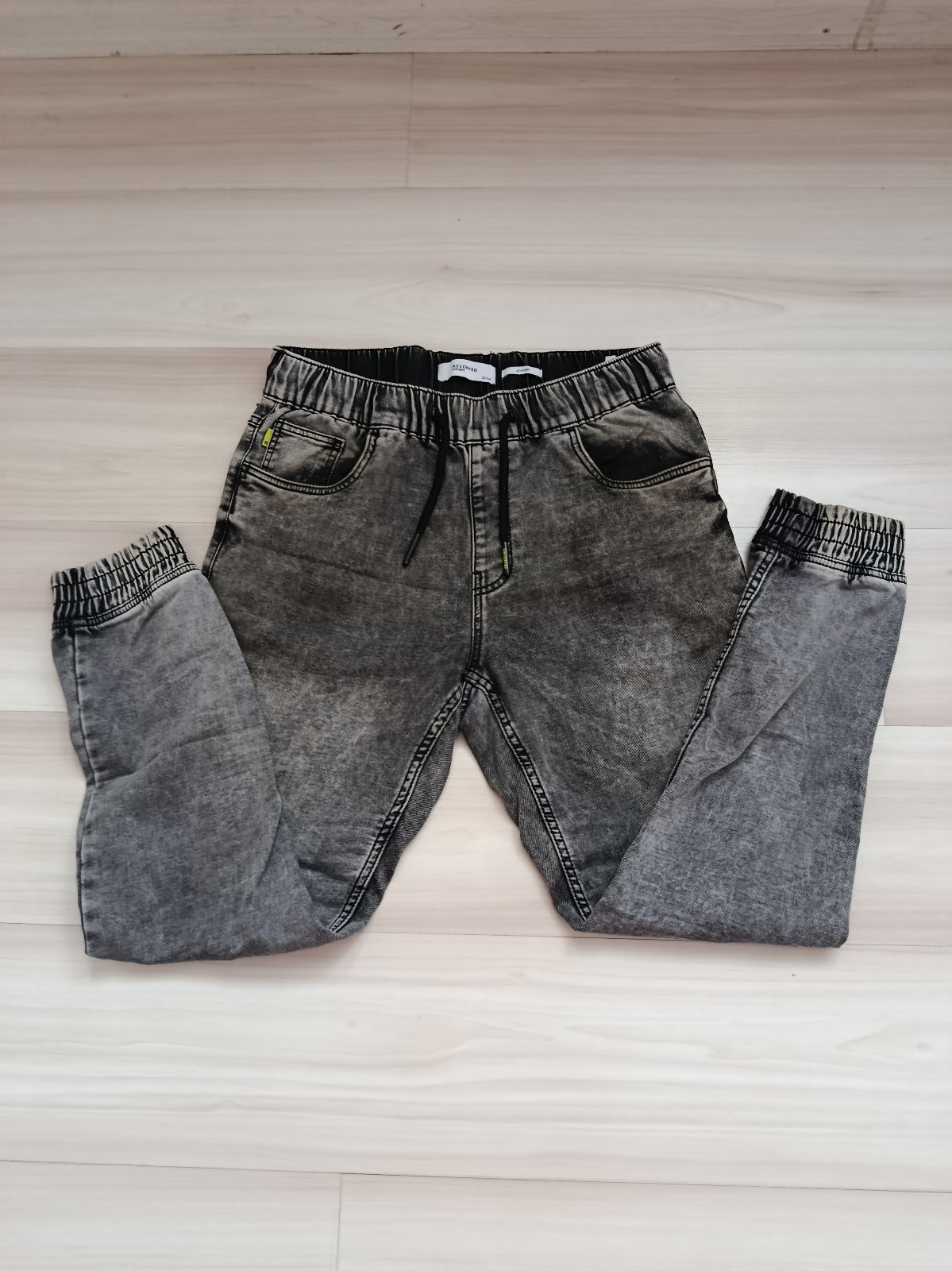 Predám málo nosené rifle zn. Reserved denim jogger, vo výbornom stave, v páse na gumu, aj ukončenie nôh na gumu.