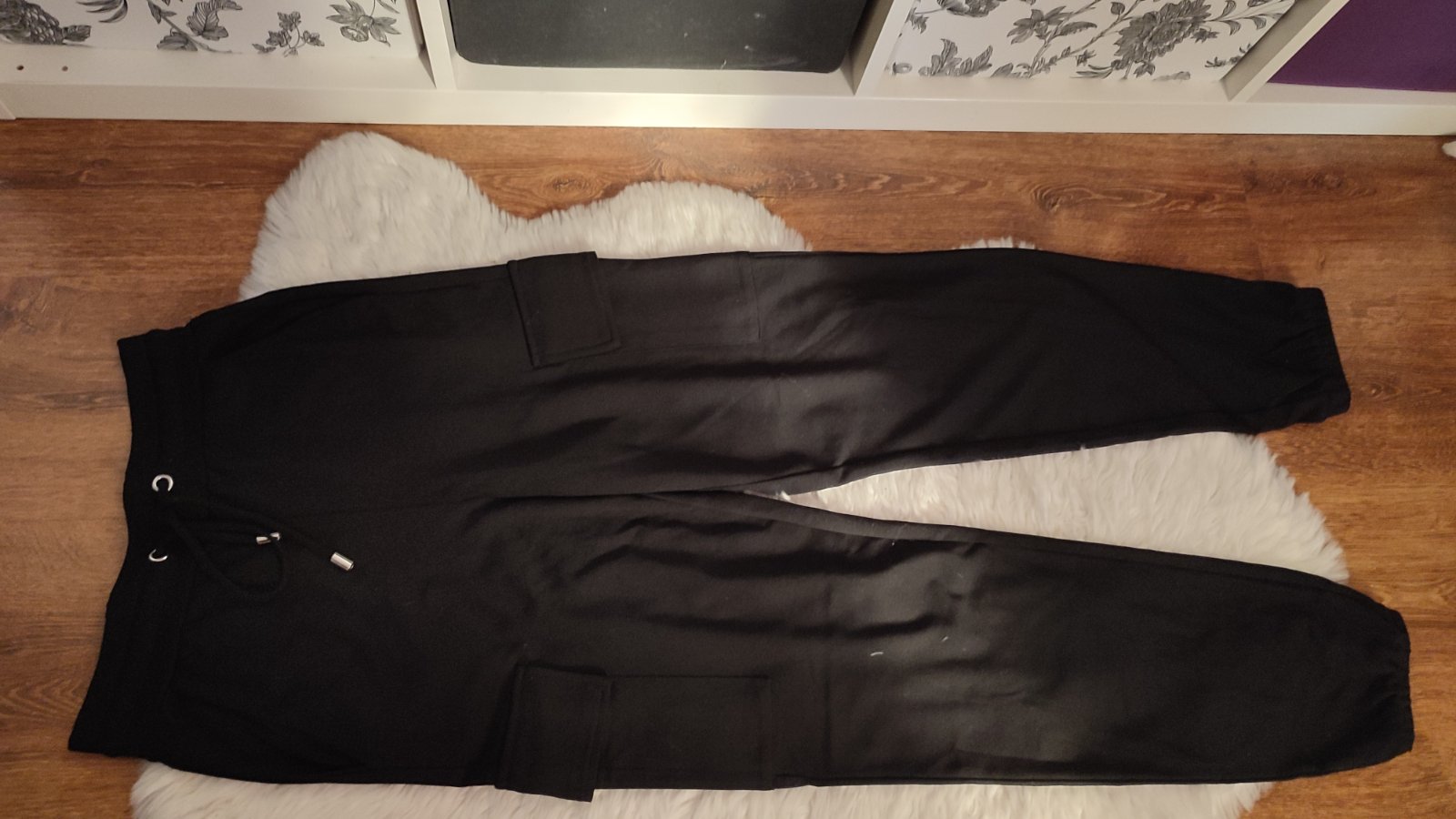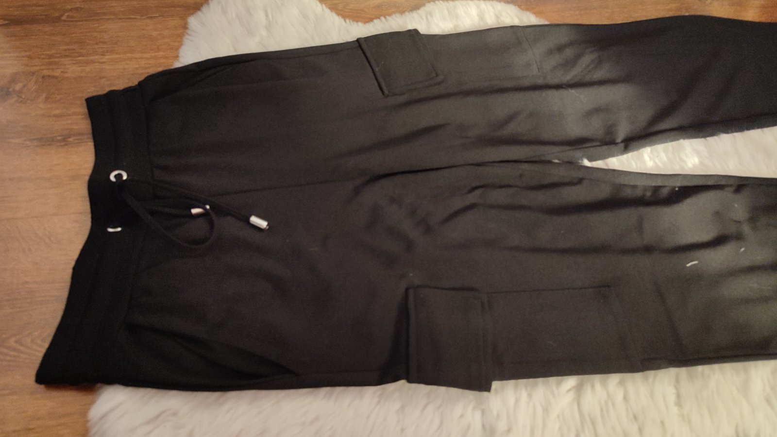 Príjemné nohavice s kapsami na bokoch výborný stav, pás 32-47 cm, boky 46 cm, dĺžka 101 cm.