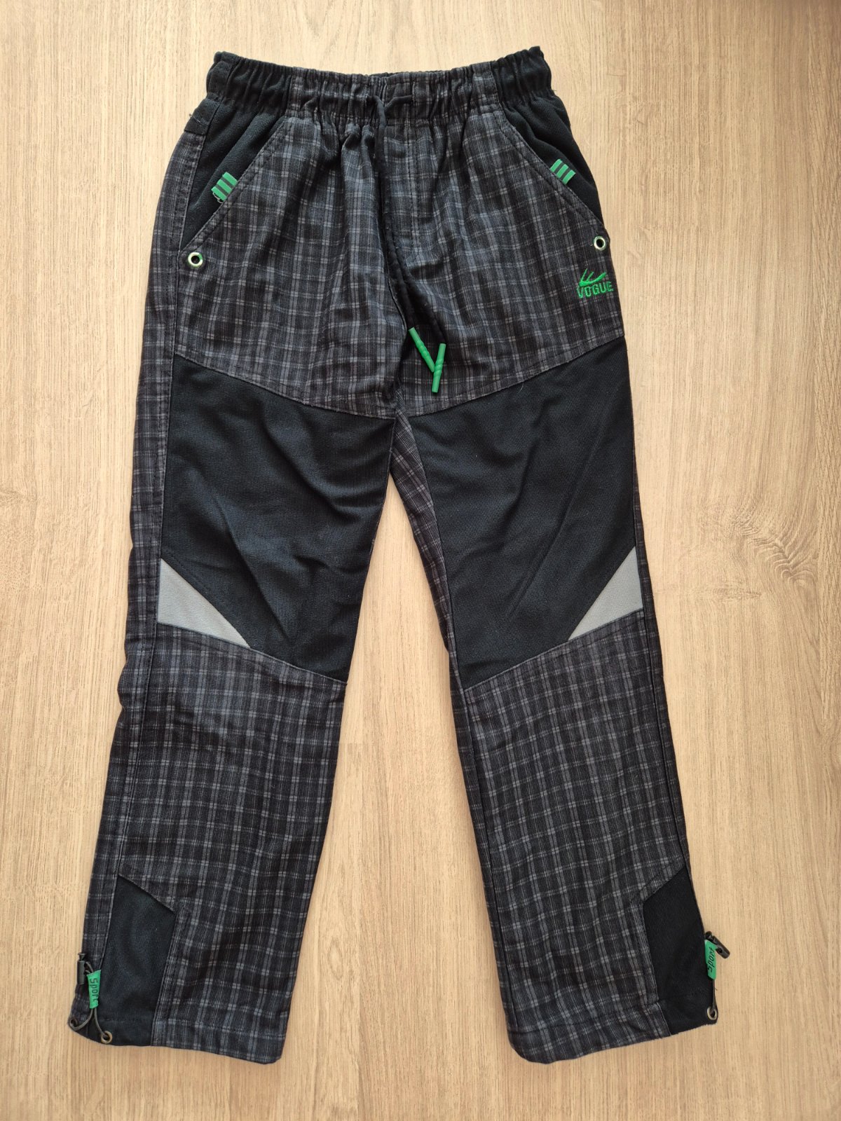 Málo nosené zateplené nohavice bez poškodenia. Sú podšité, skôr stredne teplé až teplé. Nie sú nepremokavé, ale sú priedušné nakoľko je to 100% bavlna. Vhodné do školy alebo na bežné nosenie. Na šnúrkach sú žmolky, plastové koncovky pekné, bez akéhokoľvek poškodenia. Na spodu sa dajú stiahnuť gumičky (pozri foto), takže sa dajú nosiť aj skôr alebo kto preferuje užší spodok, aby nepodfúklo...
