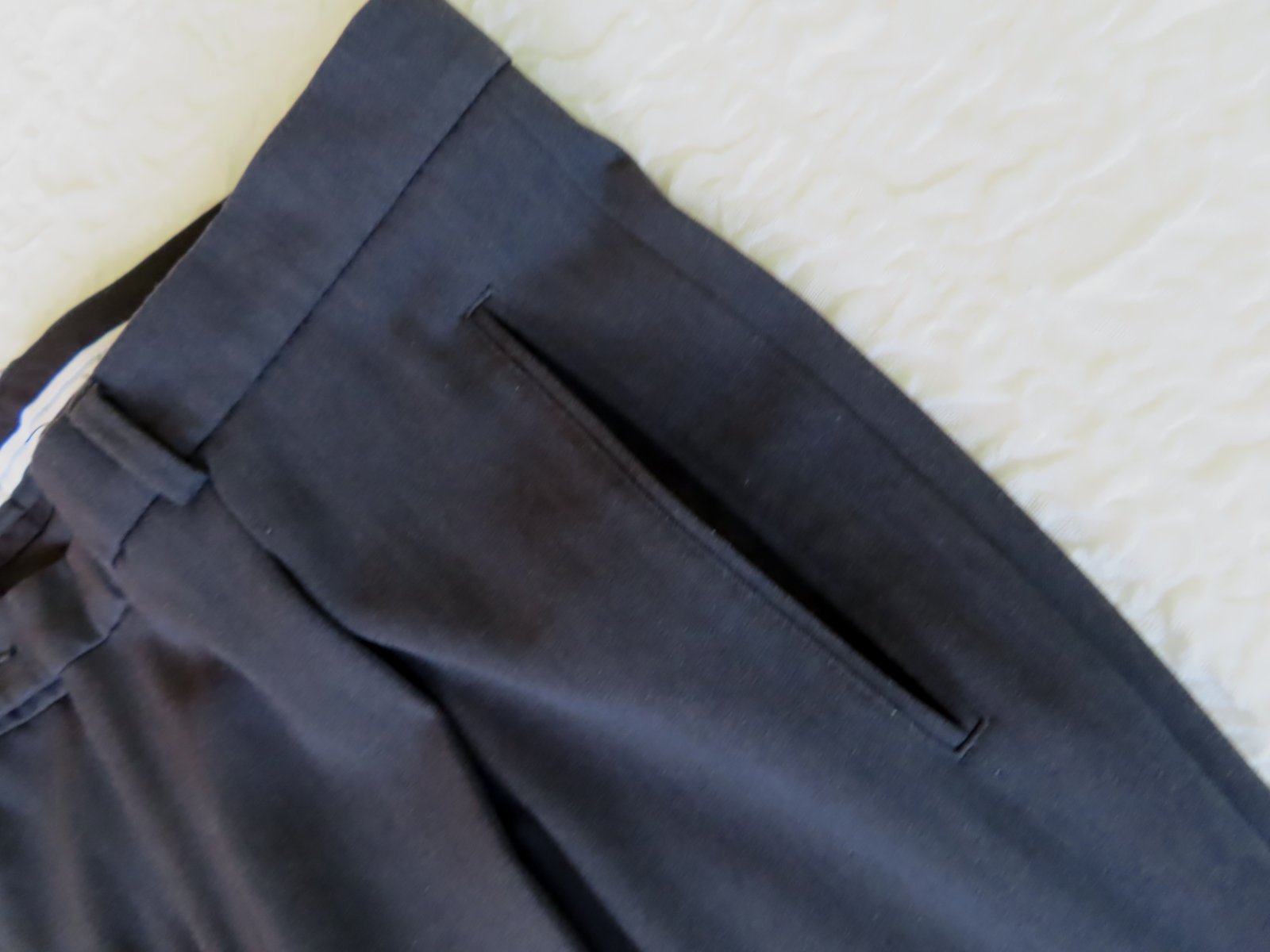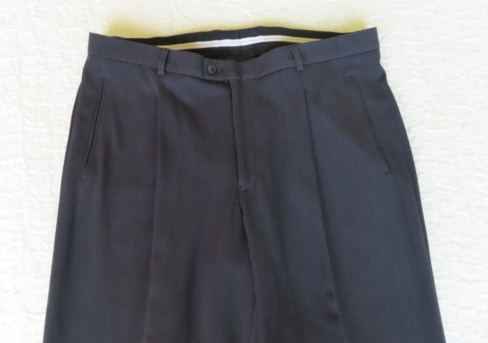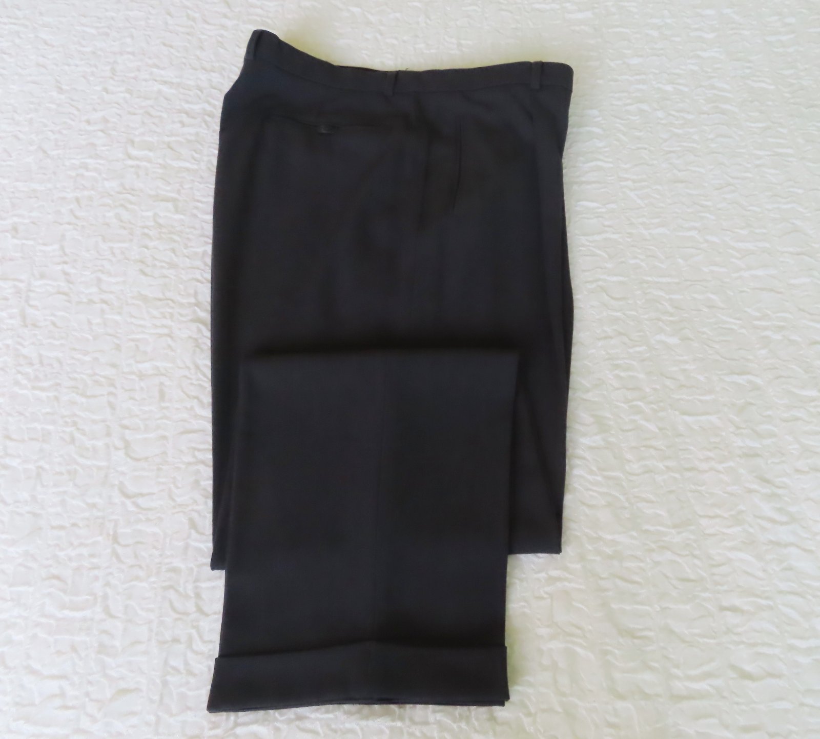 Pánske elegantné nohavice zn. Jamel, veľ.XL - rozmery: bočná dlžka 111cm, od rozkroku 83cm, pás 2x50cm, šírka stehna 10 cm pod rozkrokom je 36cm, v oblasti kolena 29cm a celkom dole 23cm.