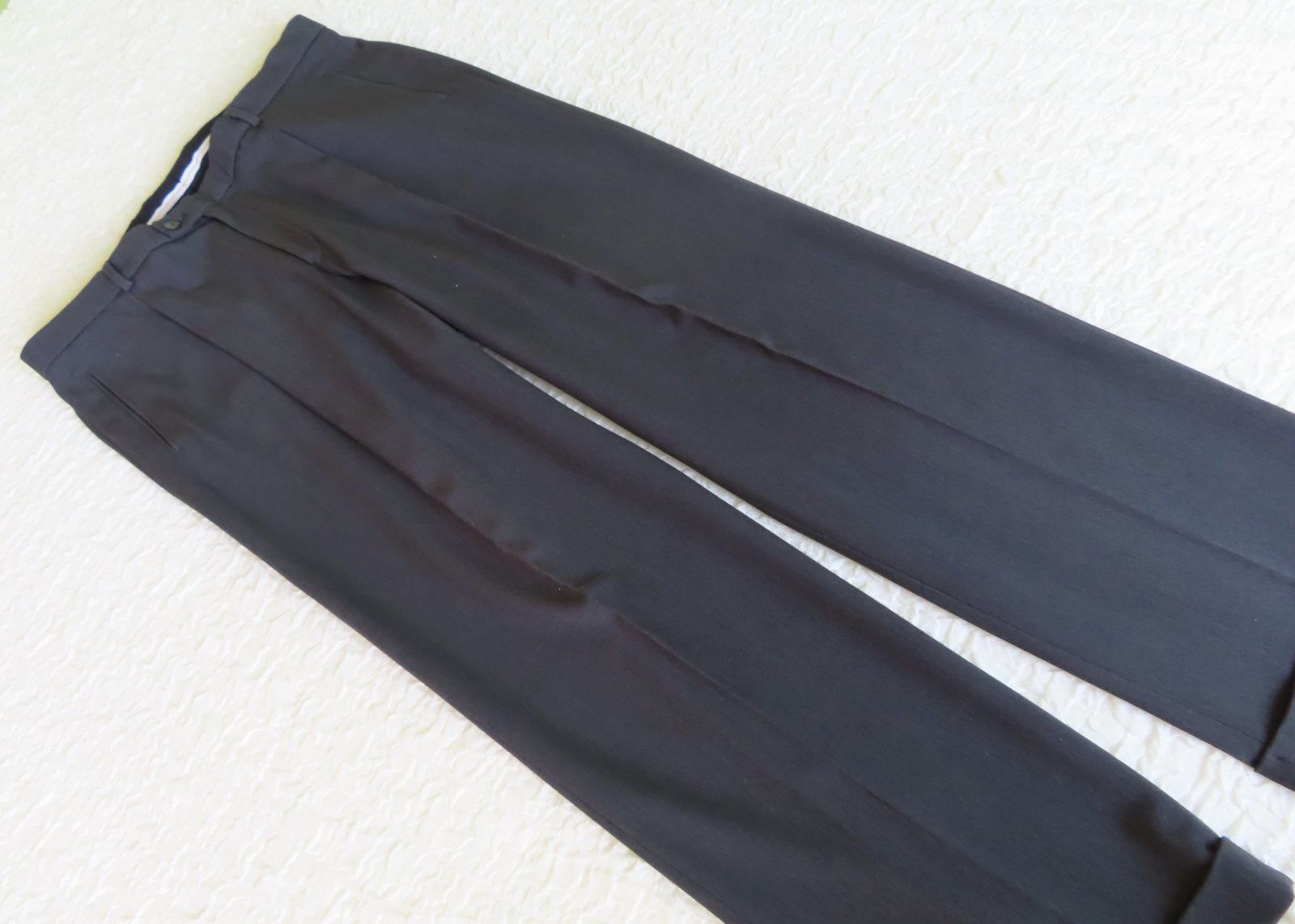 Nohavice sú tmavošedé, kvalitné, padavý materiál.