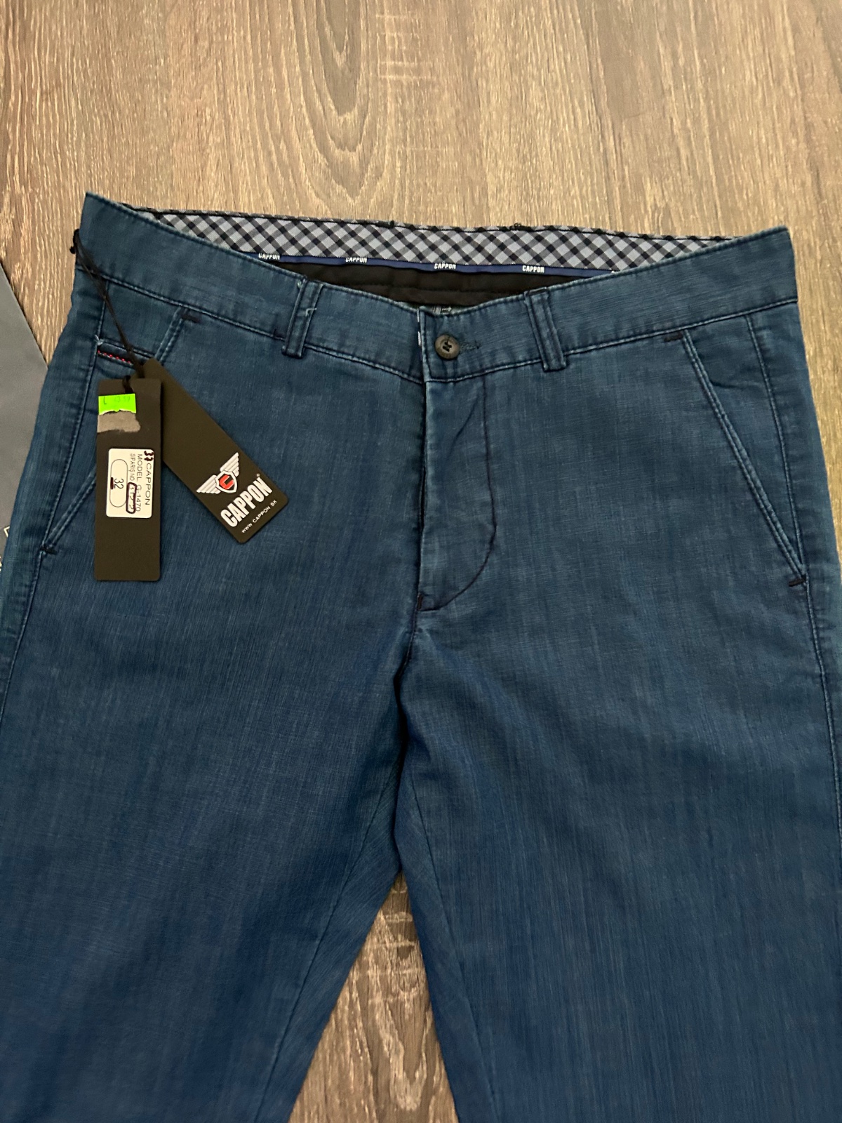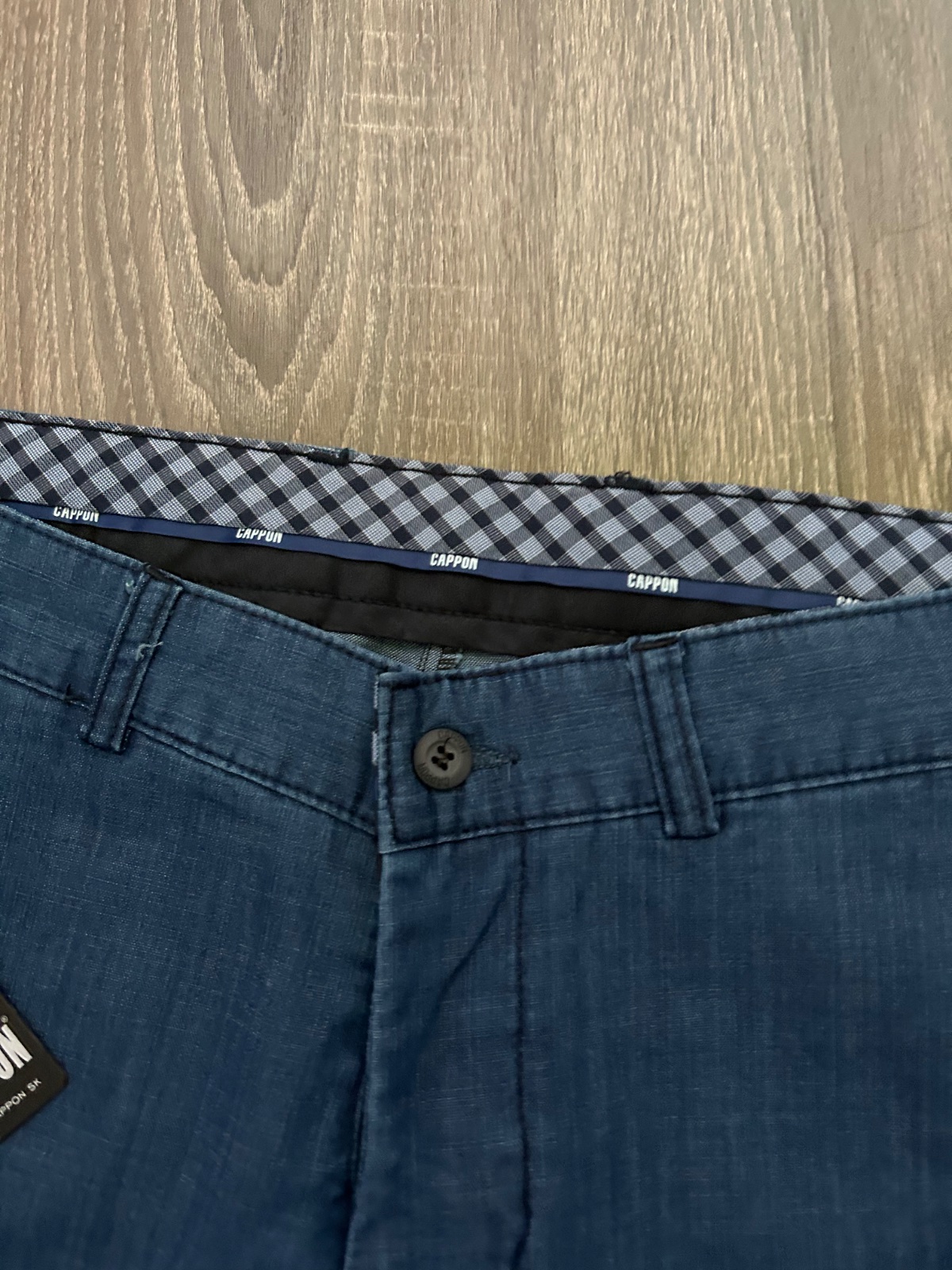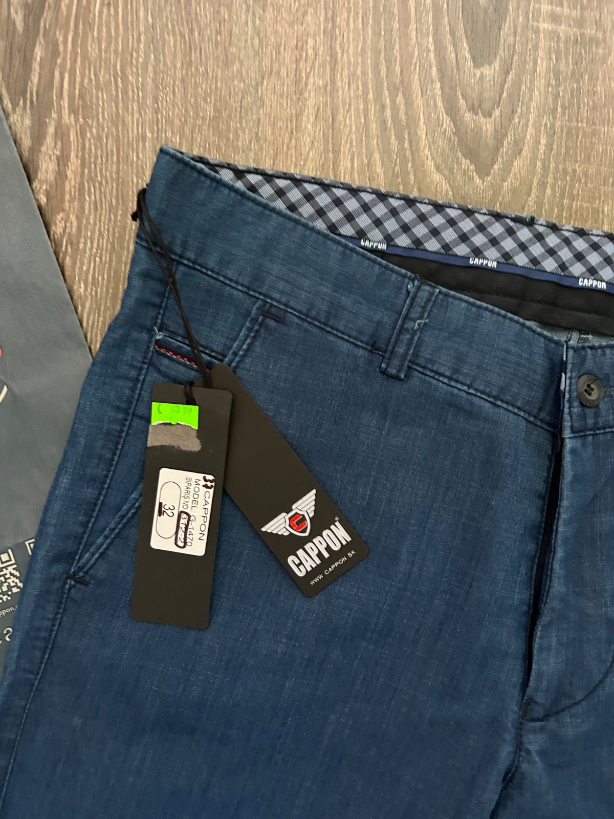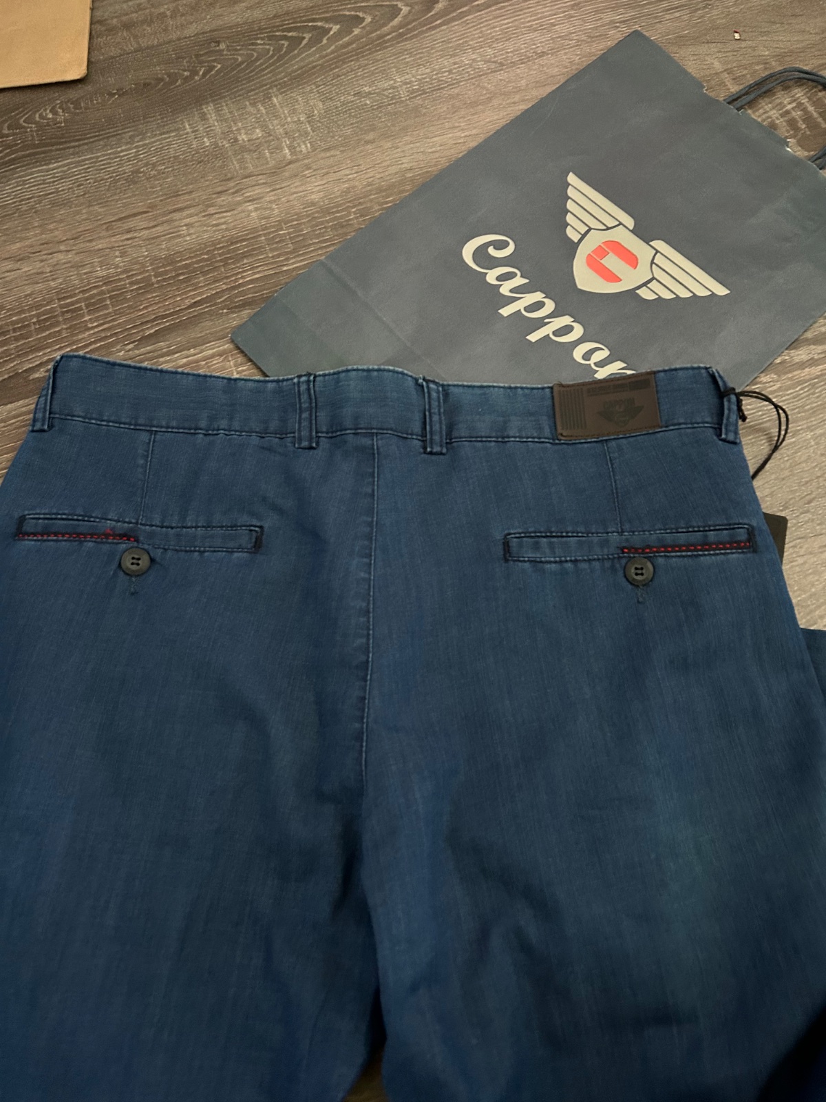 Cappon nove panske elegantne nohavice komplet s etiketou , vhodne na darovanie,velkost pise 32,dlzka je 112cm,,sirka v pase je 43x2cm,predny sed ma 25cm a zadny ma 36cm,sirka stehna pod rozkrokom je 30cm a sirka dole je 17x2cm