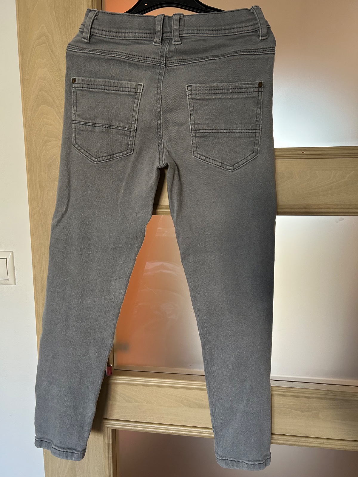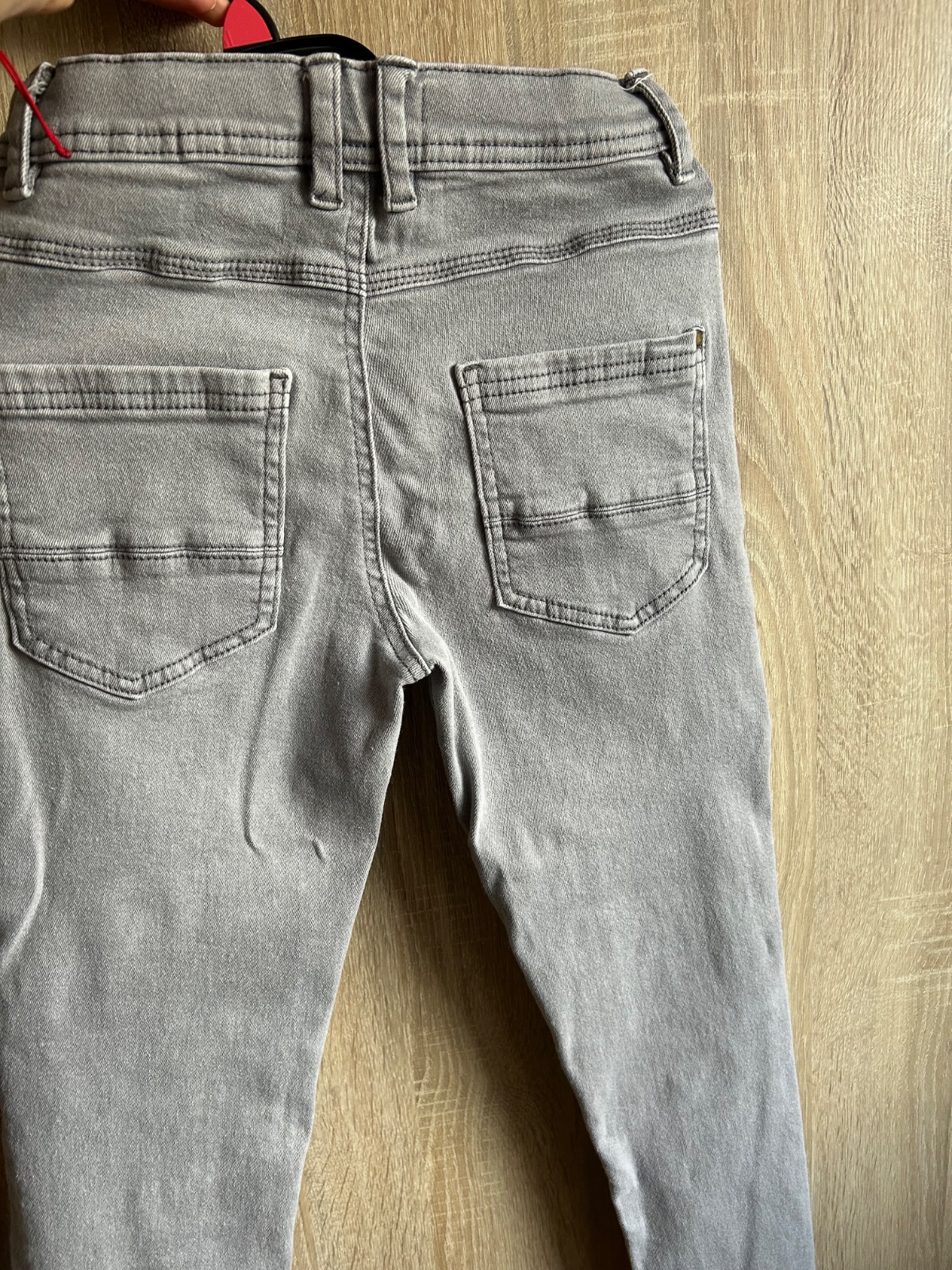 Svetlosede riflove joggery s ozdobnymi nasivkami zn. Reserved, velkost 140, rozmery na foto. Riflovina je elasticka. Bezne znamky nosenia, bez poskodeni.