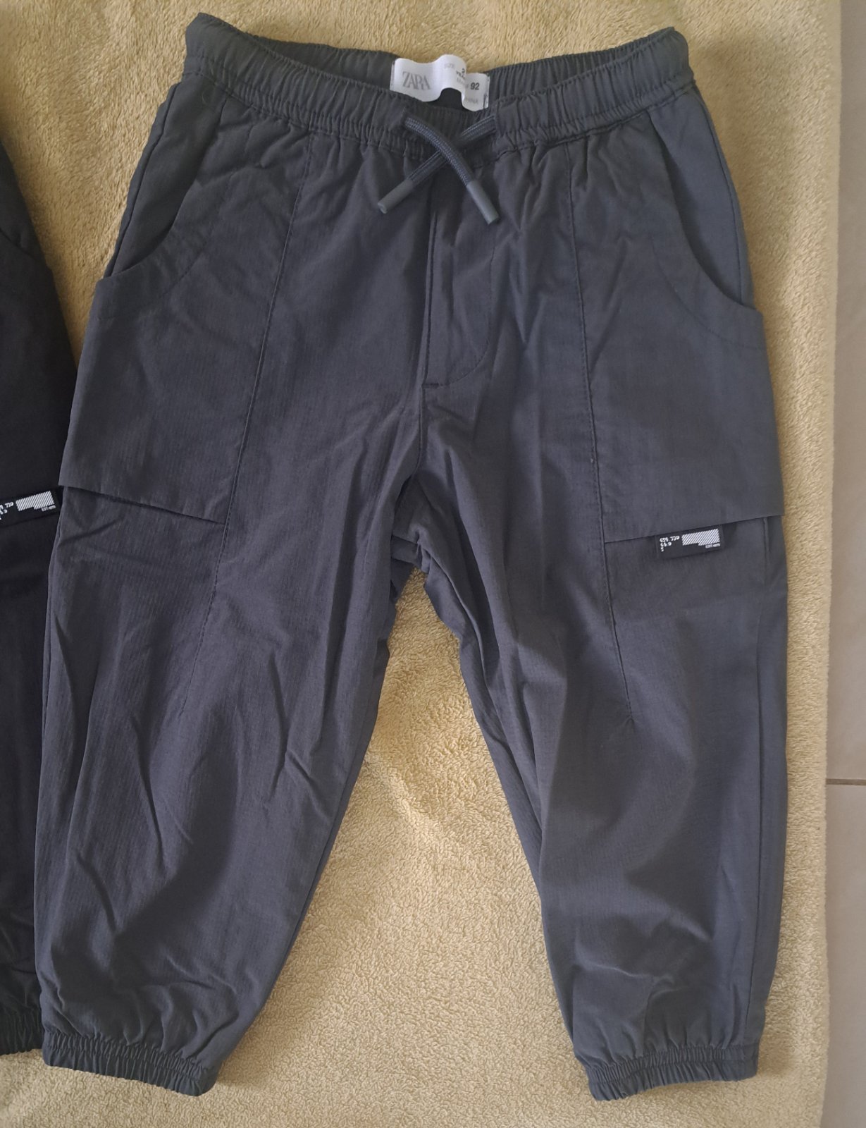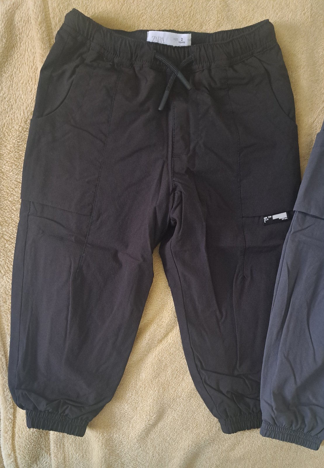 Neznosené nohavice vhodné aj do škôlky. 1x Zara, 1x H&M. Pás nastavovací gumička+gombík, nie sú zateplené bez poškodení, fľakov a oderov. Nosené, posúvam ďalej, nám nesadlo ročné obdobie do veľkost...