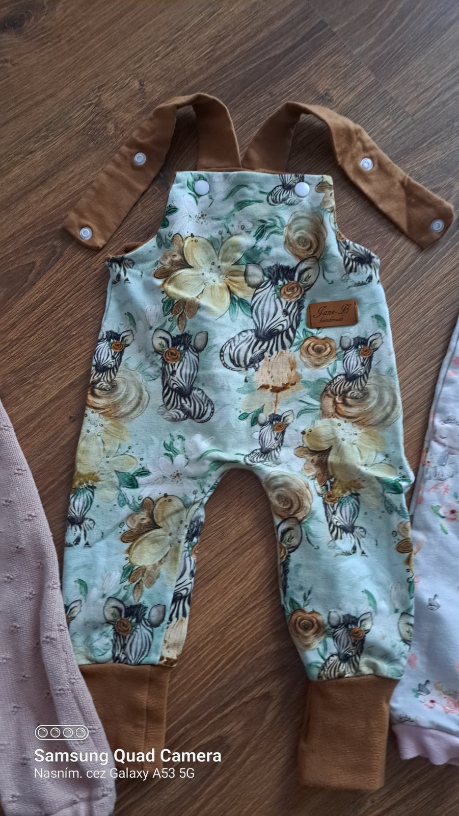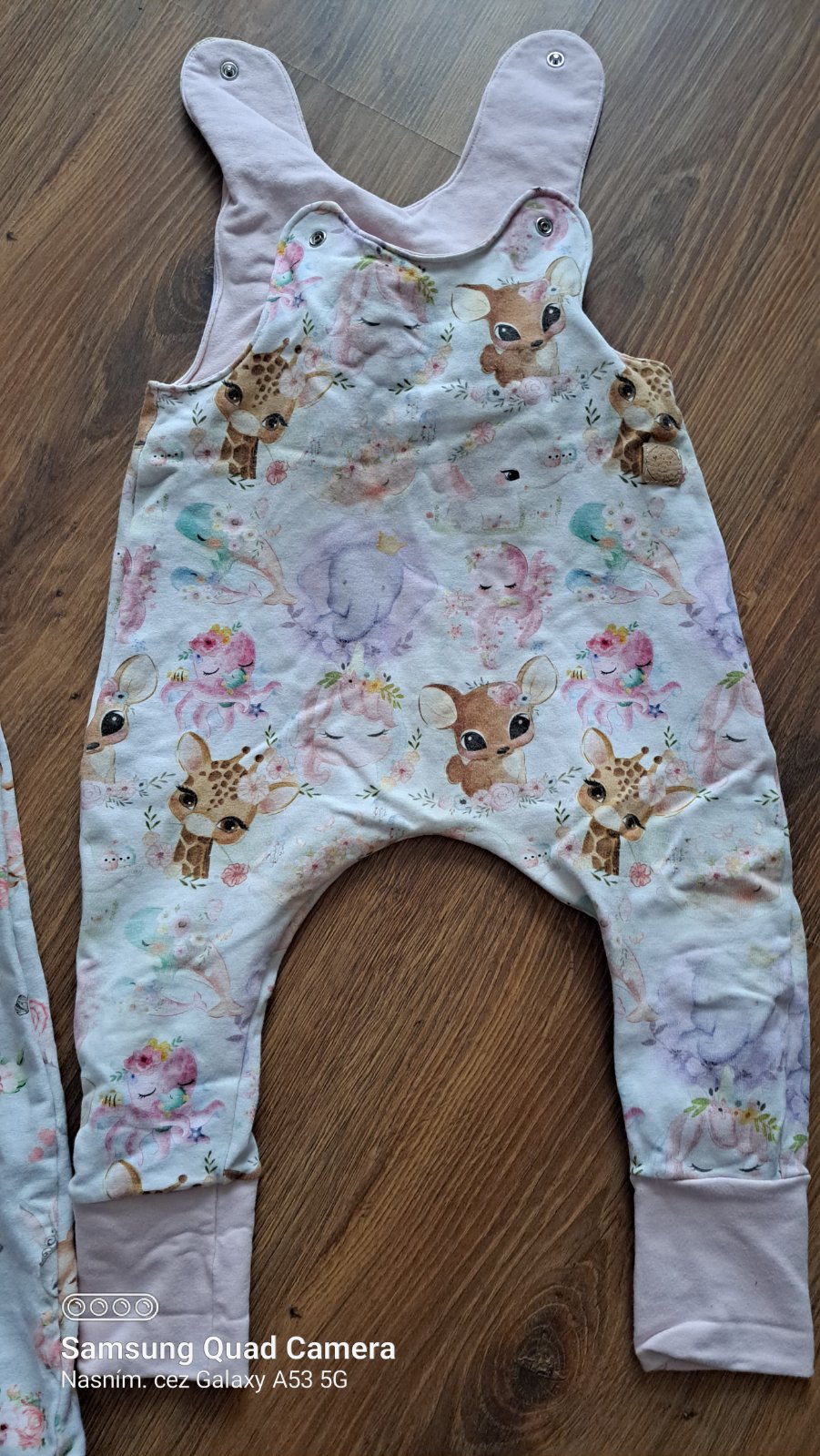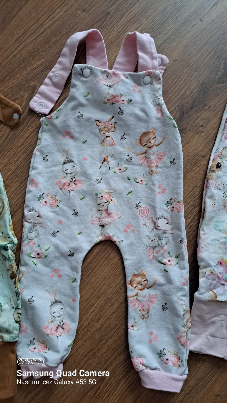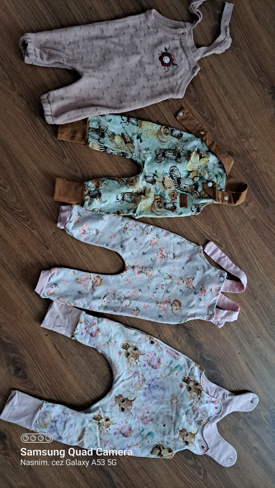 Nádherné tepláčiky/záhradníčky z kvalitnej teplákoviny. Material 95%bavlna, 5%elastan. Tepláčiky majú rozpoznanie na ramienkách, spodok ukončený rastúcim patentom. Veľkosť 68 - 17€ + poštovné