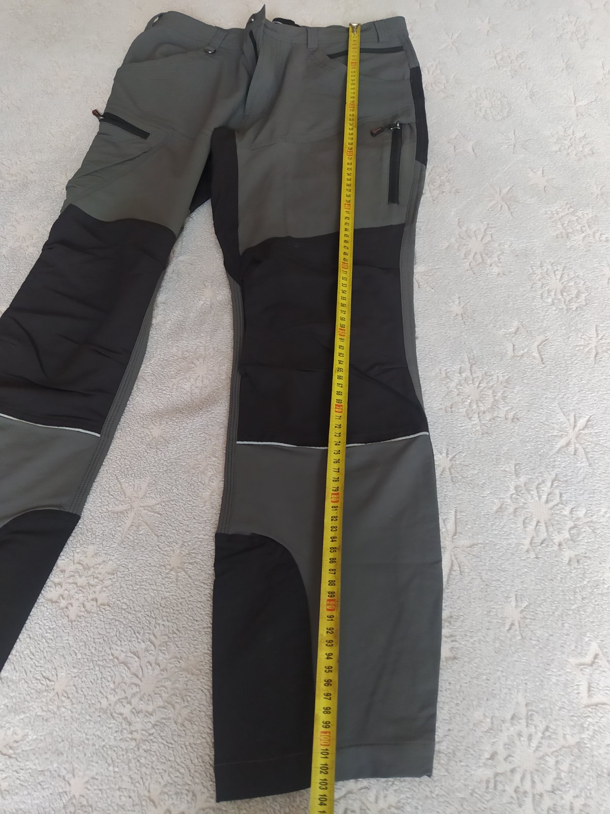 Pánske nohavice ušité na mieru. Materiál kvalitný, takmer nekrčivý. Farba tmavo hnedá. Obvod pásu 84 cm. Bočná dĺžka je 109 cm. Vnútorná dĺžka je 80 cm. Môj odhad je veľkosť M, ale držte sa radšej ...