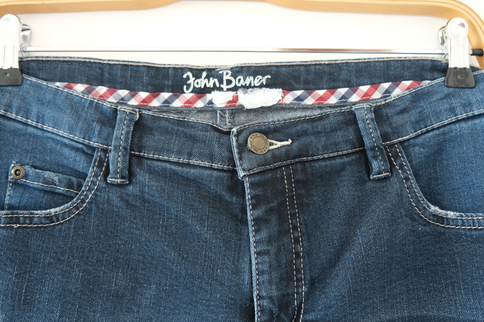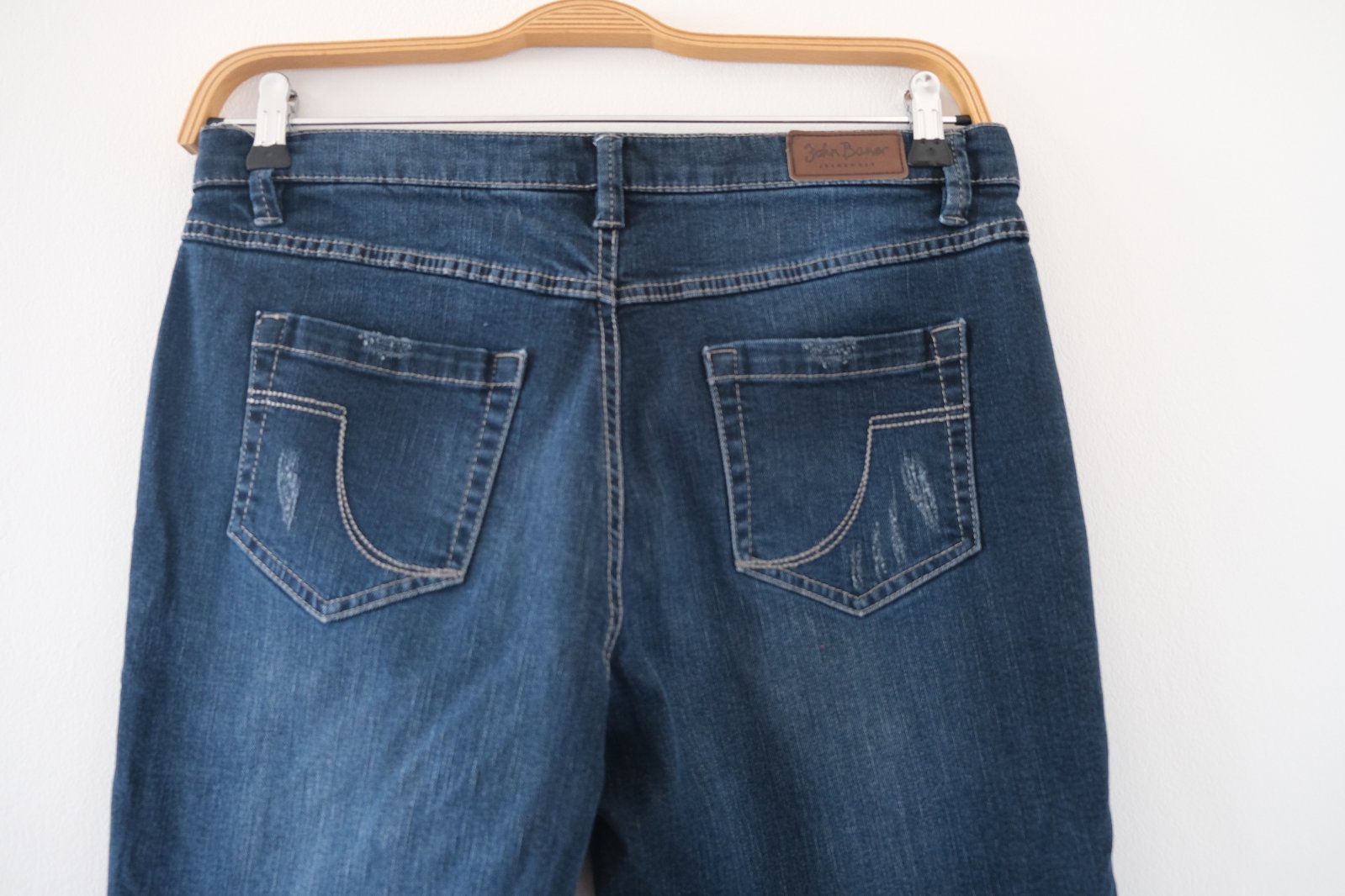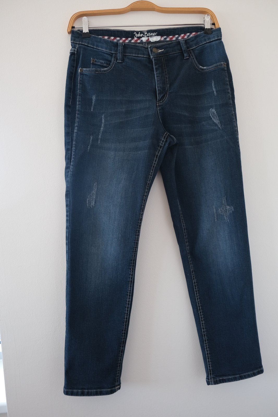 Vysoký pás, voľnejšie cez boky a stehná mierne zúžené nohavice smerom dole, pevnejší denim , roztrhané detaily sú originál.