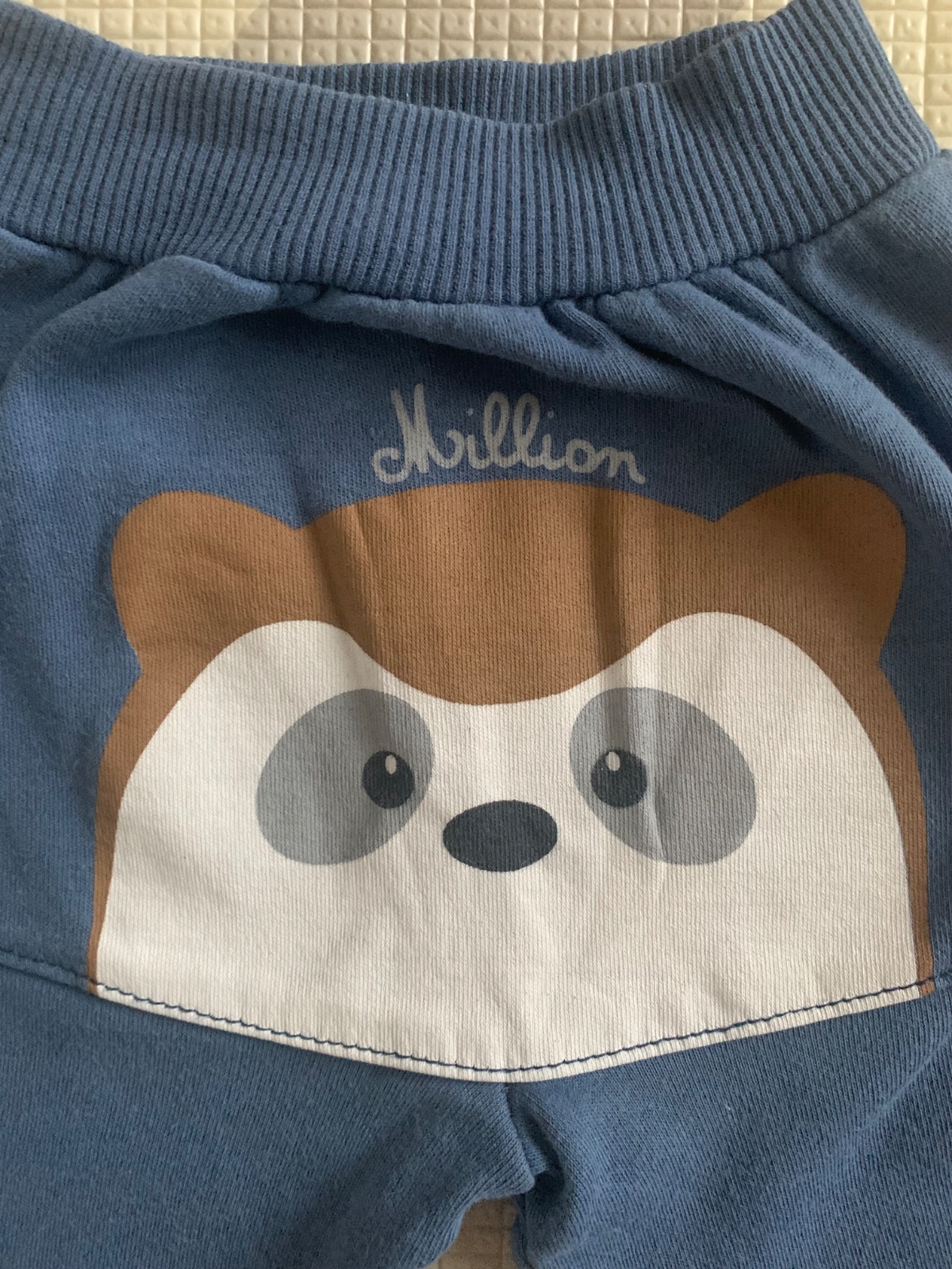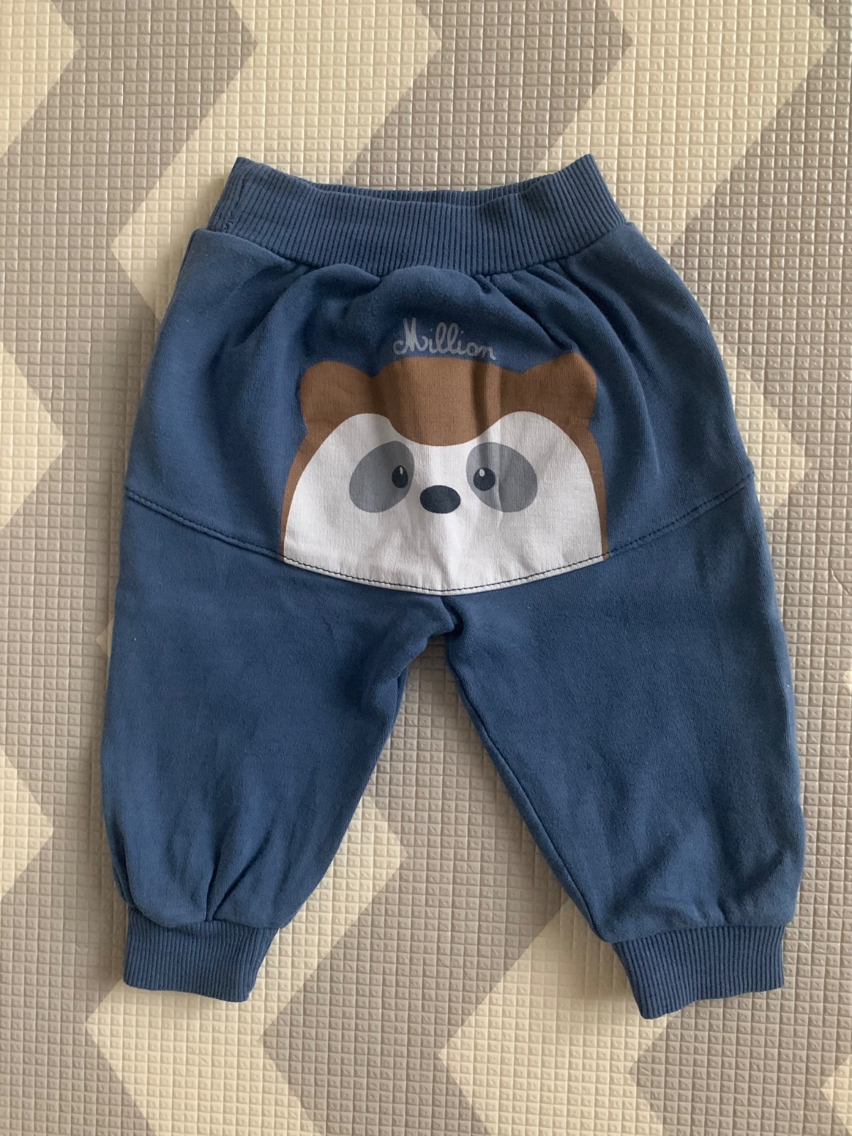 Dojčenské tepláky s potlačou leňochoda na zadočku.