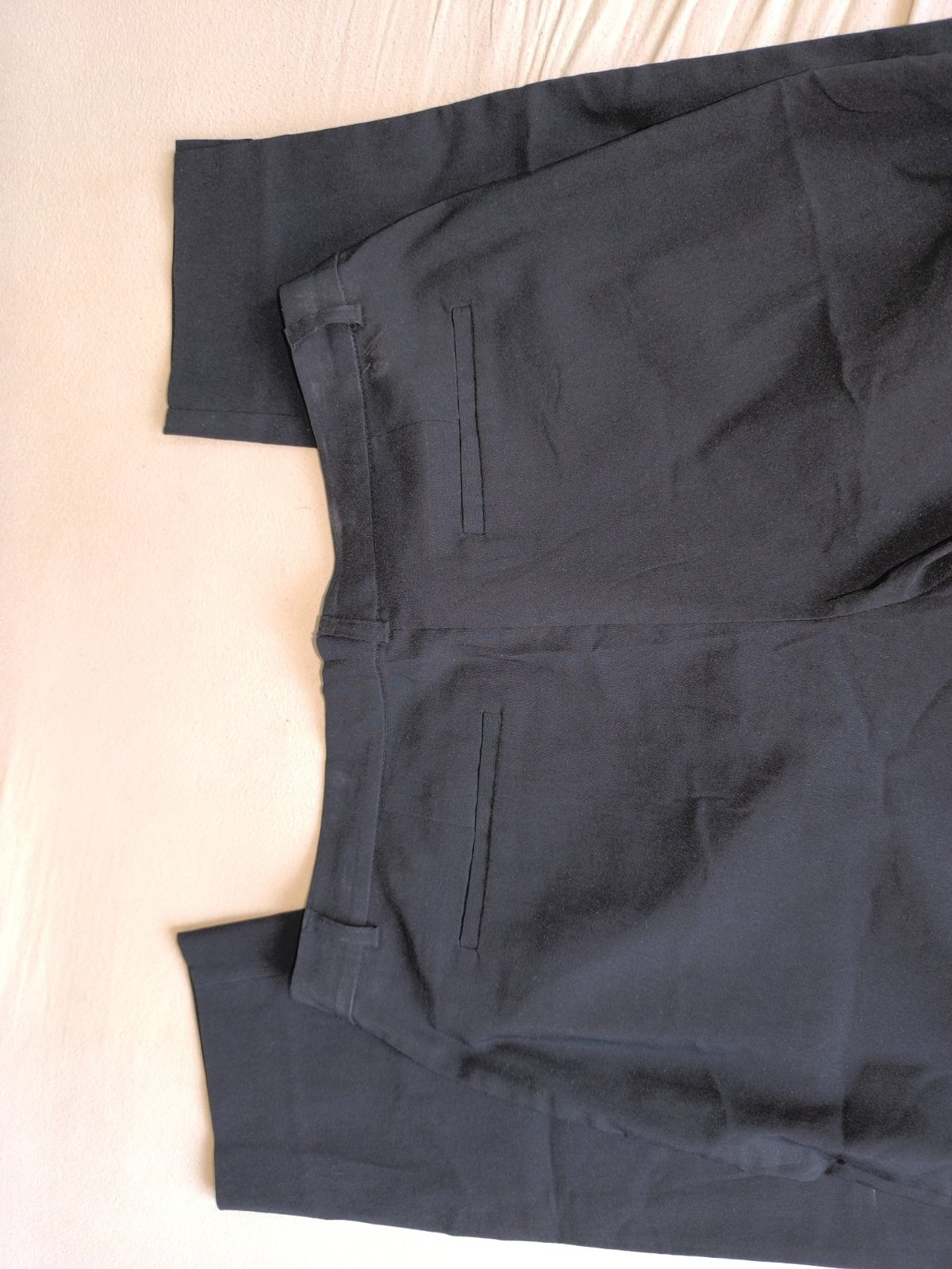 Nohavice sú len vyskúšané, opraté a ožehlené. Sú absolútne bez poškodení, farby krásne žiarivé. Látka je jemne elastická, ale nie príliš, džínsový vzhľad aj strih. Dĺžka 100 cm, pás 45 cm x 2, bok...