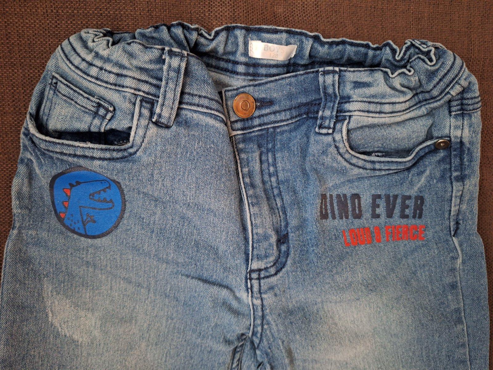 Posuvam pohodlne makke rifle so suchanym efektom a dino obrazkom a napisom s regulovatelnym pasom na gumicky, dlzka noh. vpredu 79 cm, vzadu 83 cm, darcek zdarma