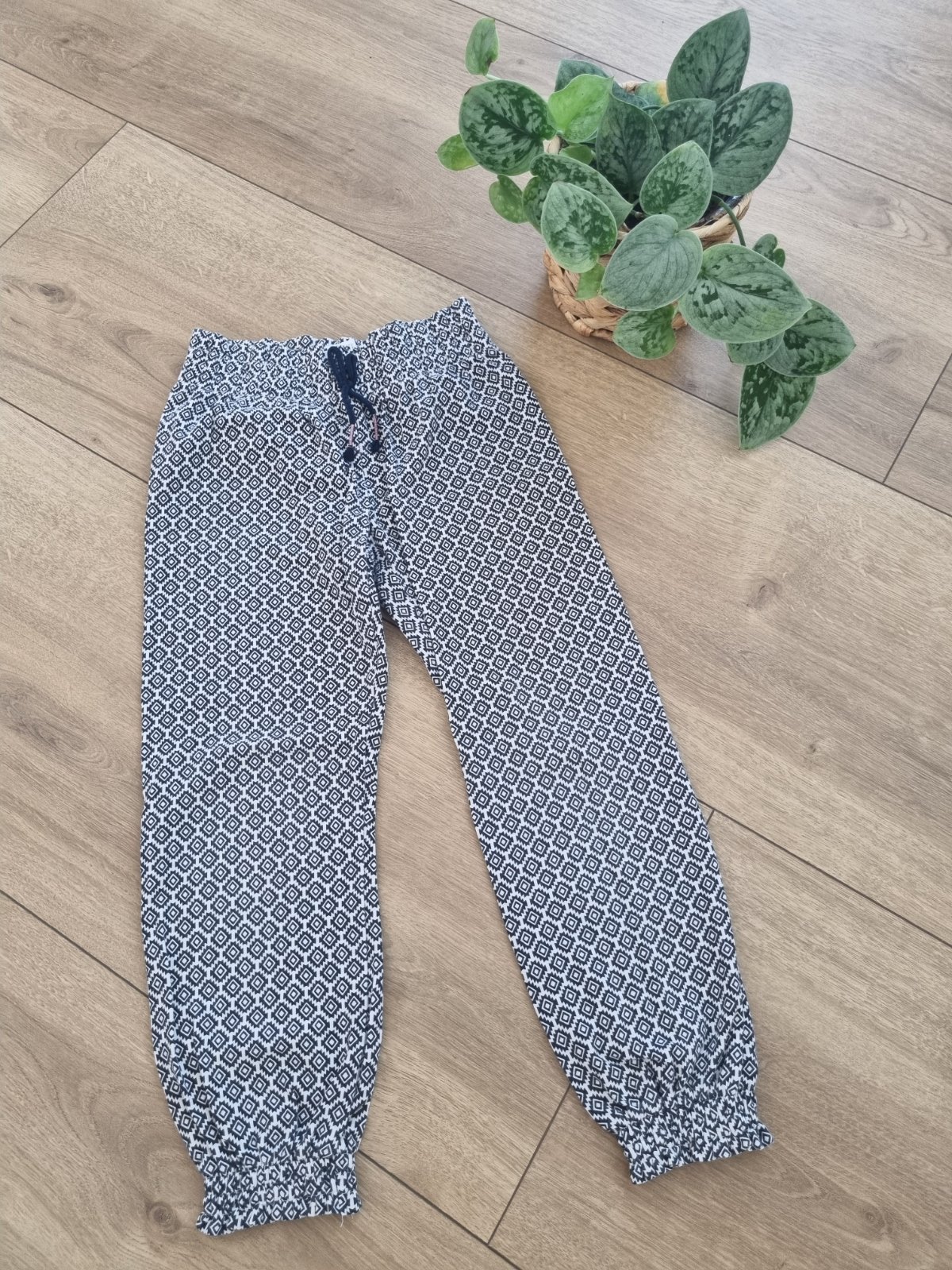 Pekné nohavice, bežné známky nosenia, trošku bledšie na kolienkach, inak bez poškodenia. Na pase sa dajú stiahnuť, zips je funkčný.