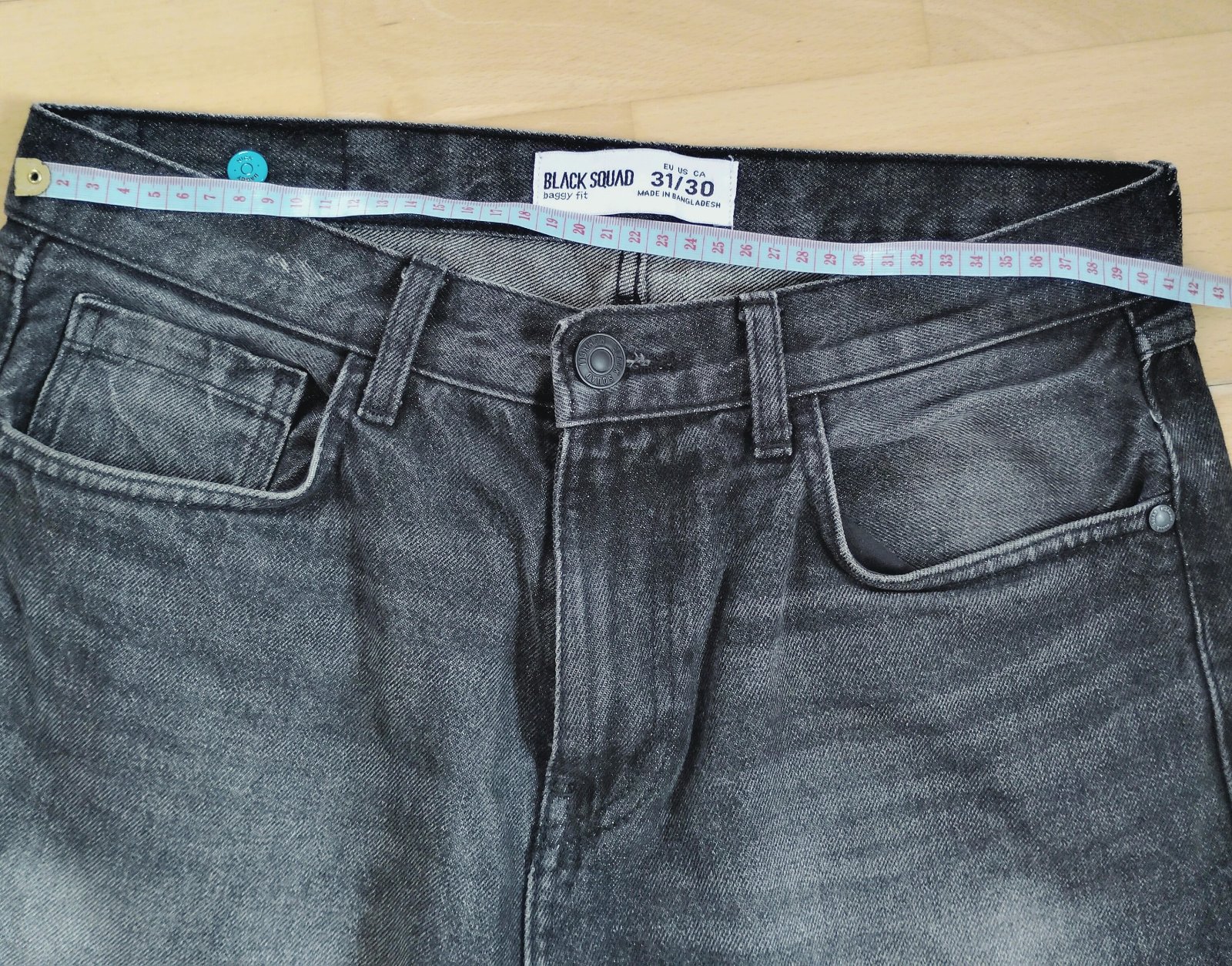 Pás 37 cm meraný v kľude Dĺžka 93 cm Boky cca 42 cm Rifle sú elastické takže ešte niečo povolia Veľkosť písaná 30/30