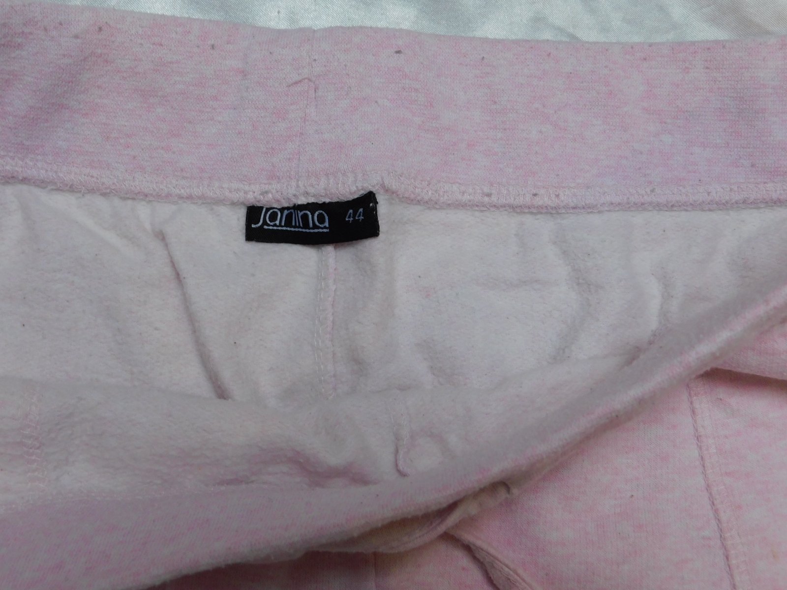 JANINA Damske teplaky bledo ružovej farby,v pase gumka,šnurka na stiahovanie.60%bavlna,40%polyester.dobry noseny stav. se38