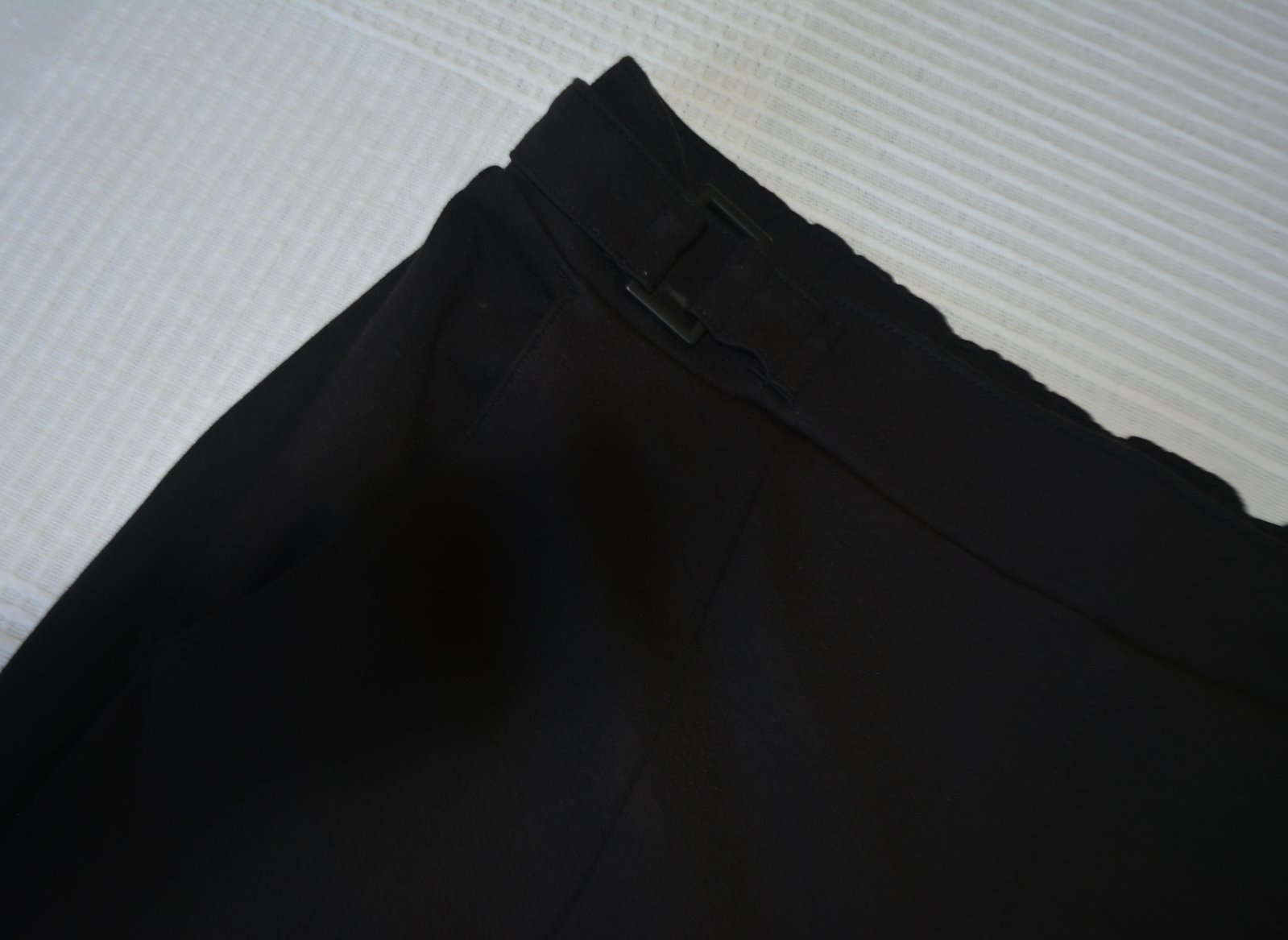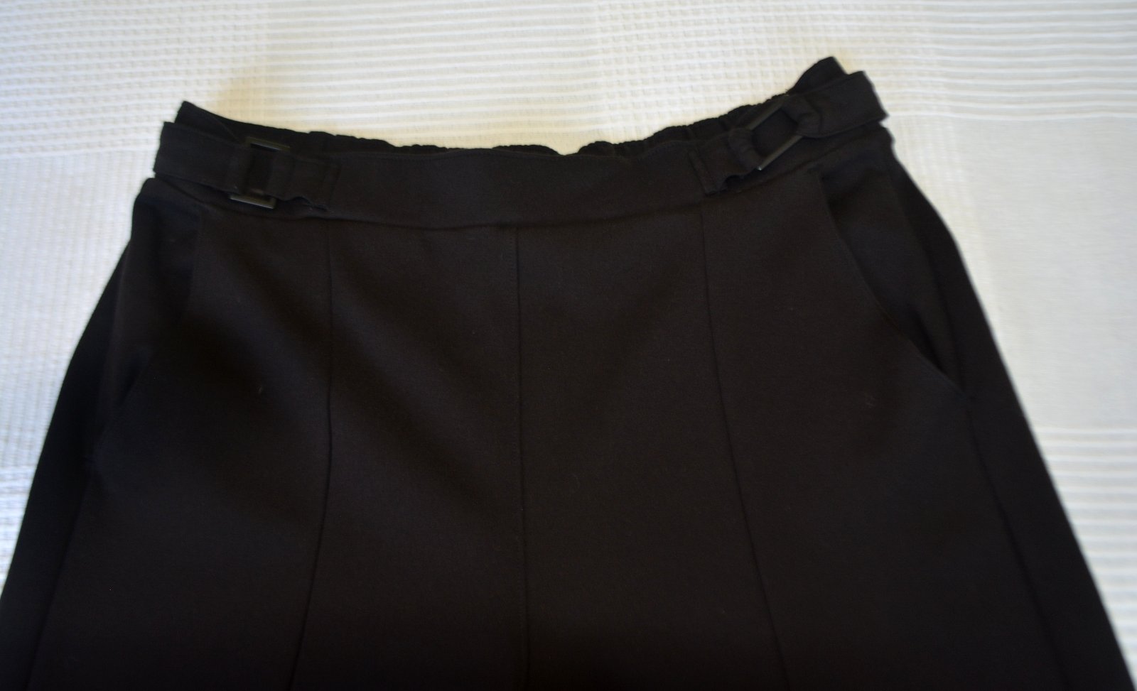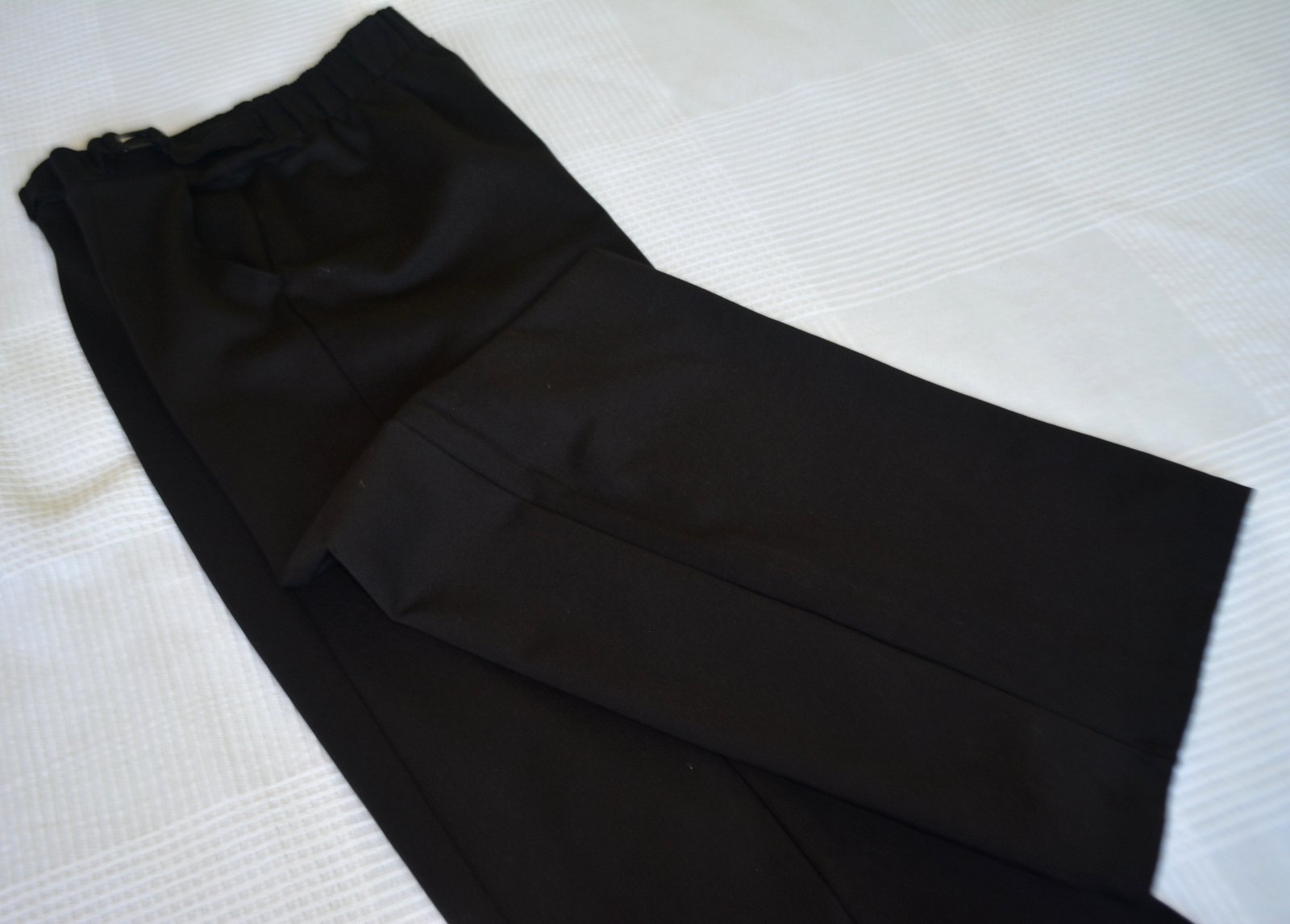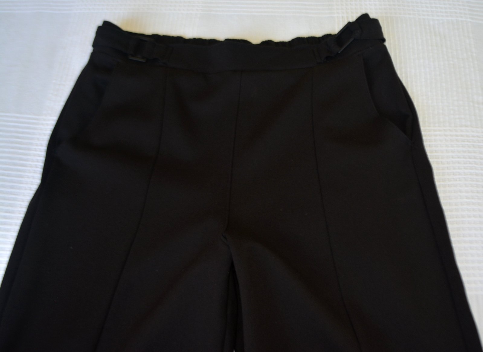 Nohavice sú bez zapínania, pás je elastický - širší strih.