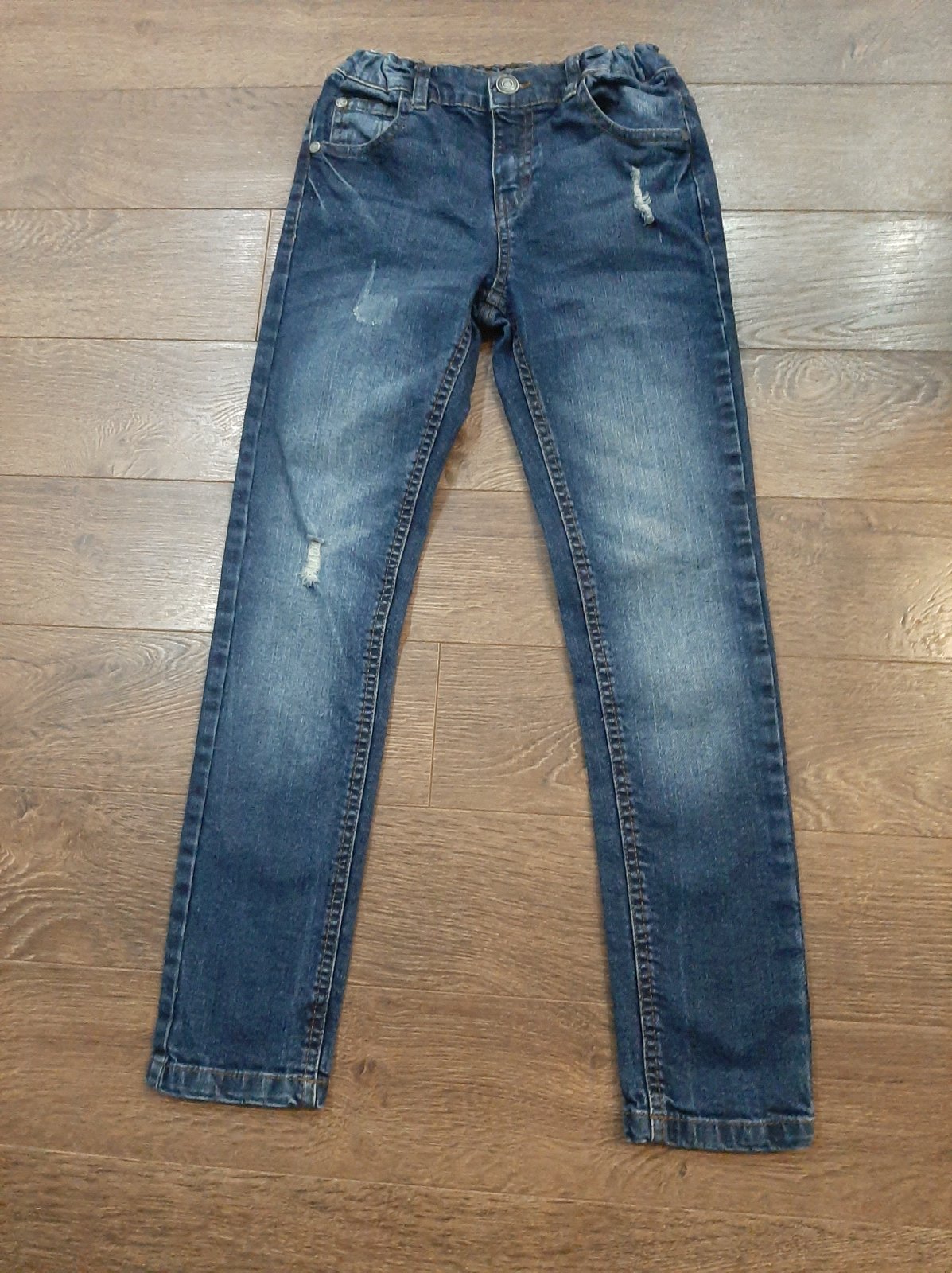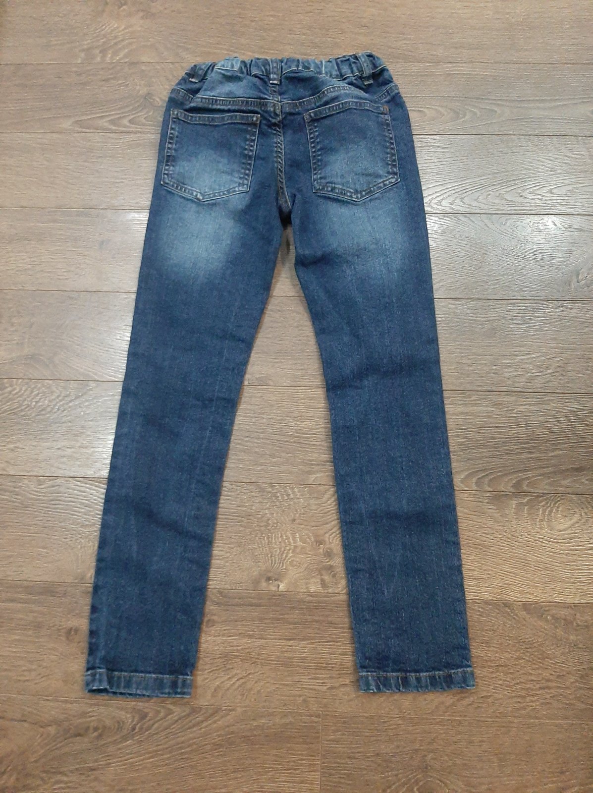 Ziadne vady, elasticke, v pase gumka.Udava velkost 128 ale su väcsie.Dlzka 80 cm, sed 23 cm,pas 28 cm vklude max povoli do 35 cm.Cena aj s postou je 9 eur.