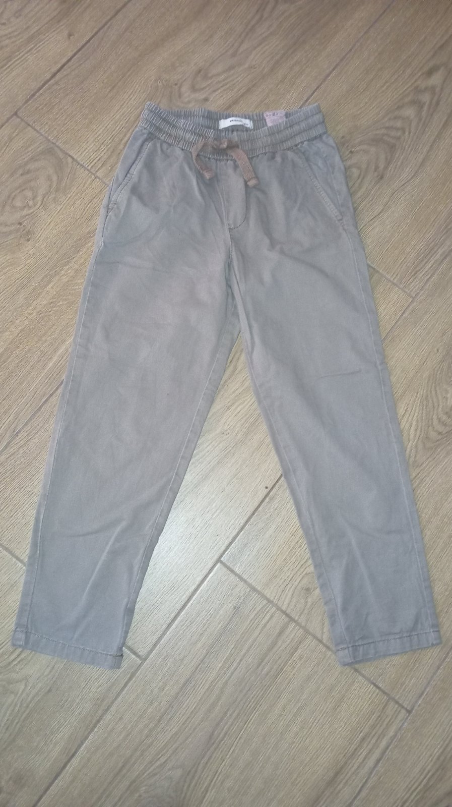 Predám nohavice veľ.128.Zachovale bez poškodenia.Su maskacove šedej farby.Rada premeriam.Cena 7€