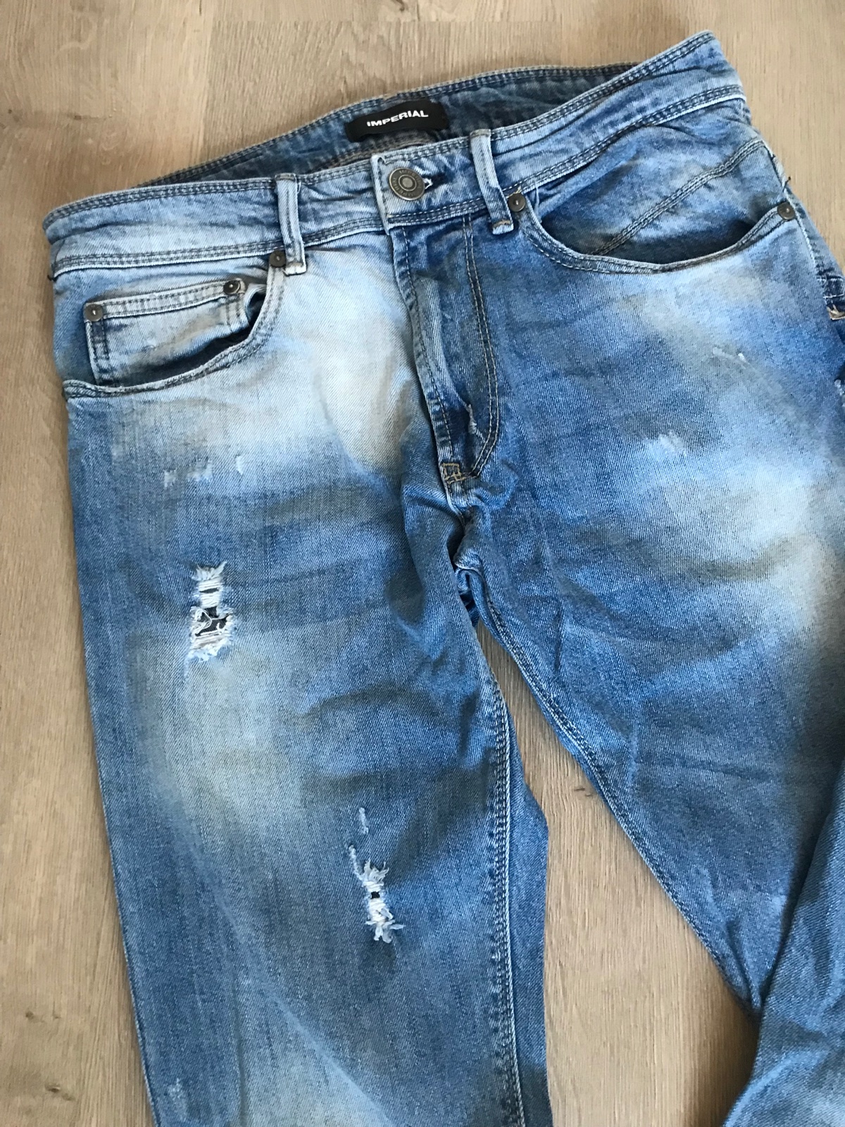 Krásne svetle rifle ...ako je vidieť na foto majú diery na oboch stranách ...moderné široké rifle na koncoch rozstrapkane top stav
