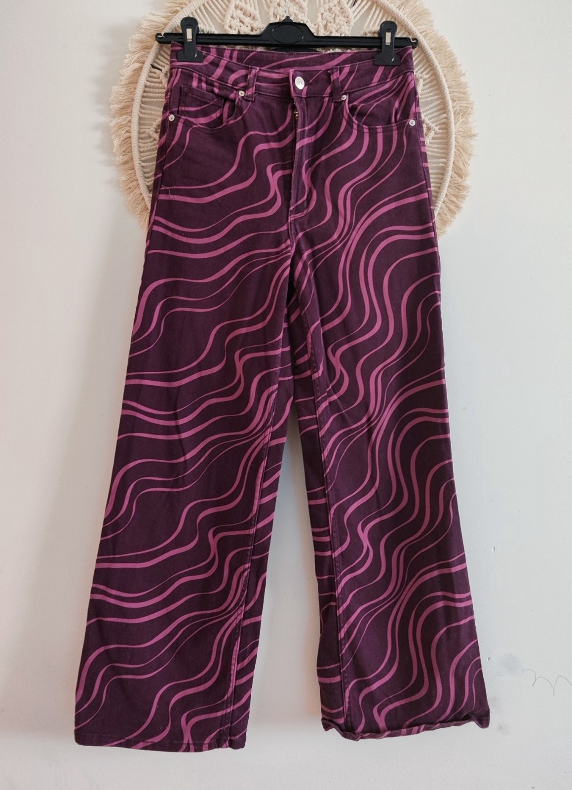 PC 29.95€.Kvalitné elastické rifle, makucke. S visačkou. Zaujímavá tmavohnedobaklazanova farba, šírka pásu je 46x cm, natiahne sa až na 53x2 cm, pred sed 23 cm, zad sed 39 cm. Pís 34, skôr 32.