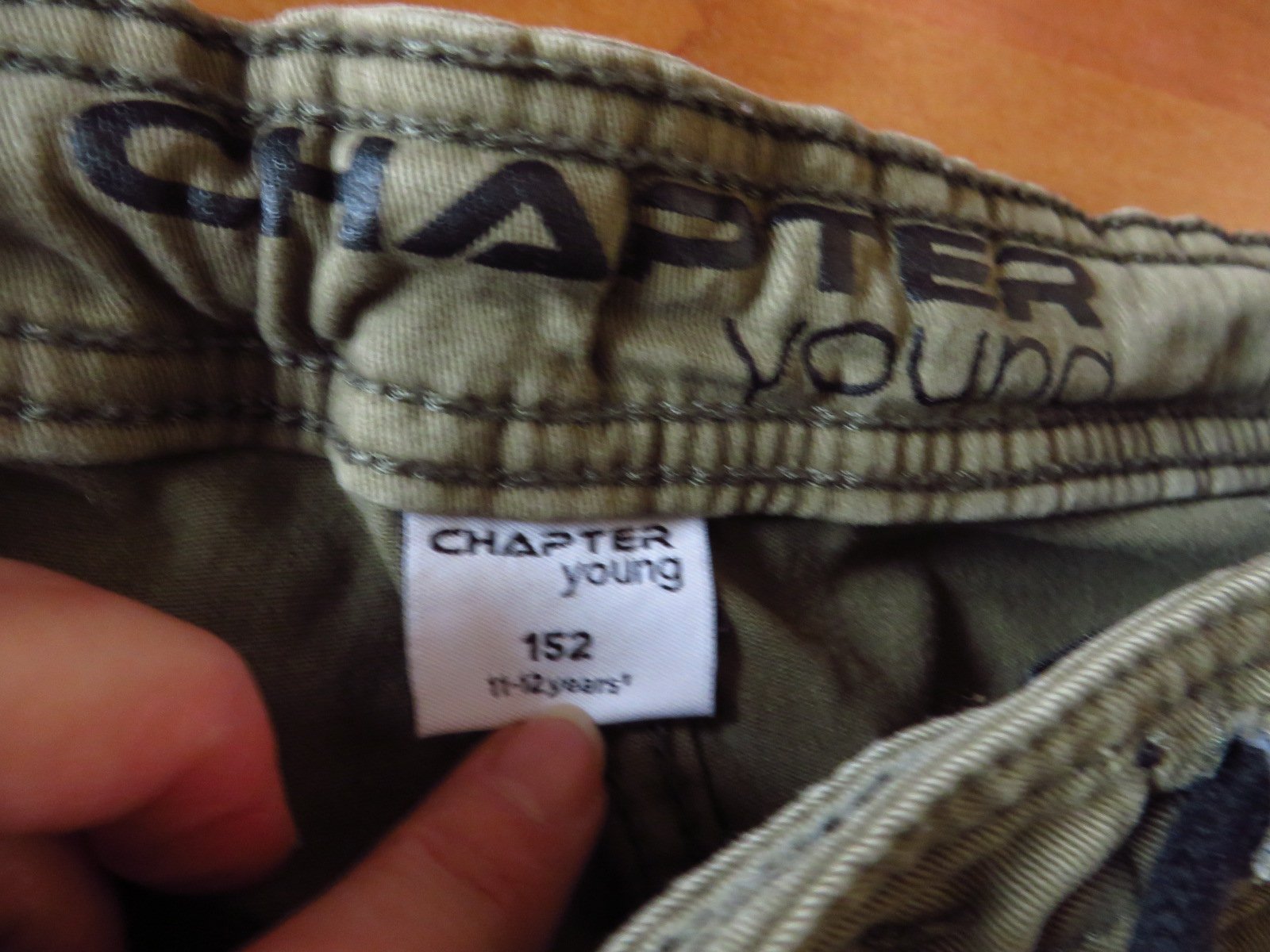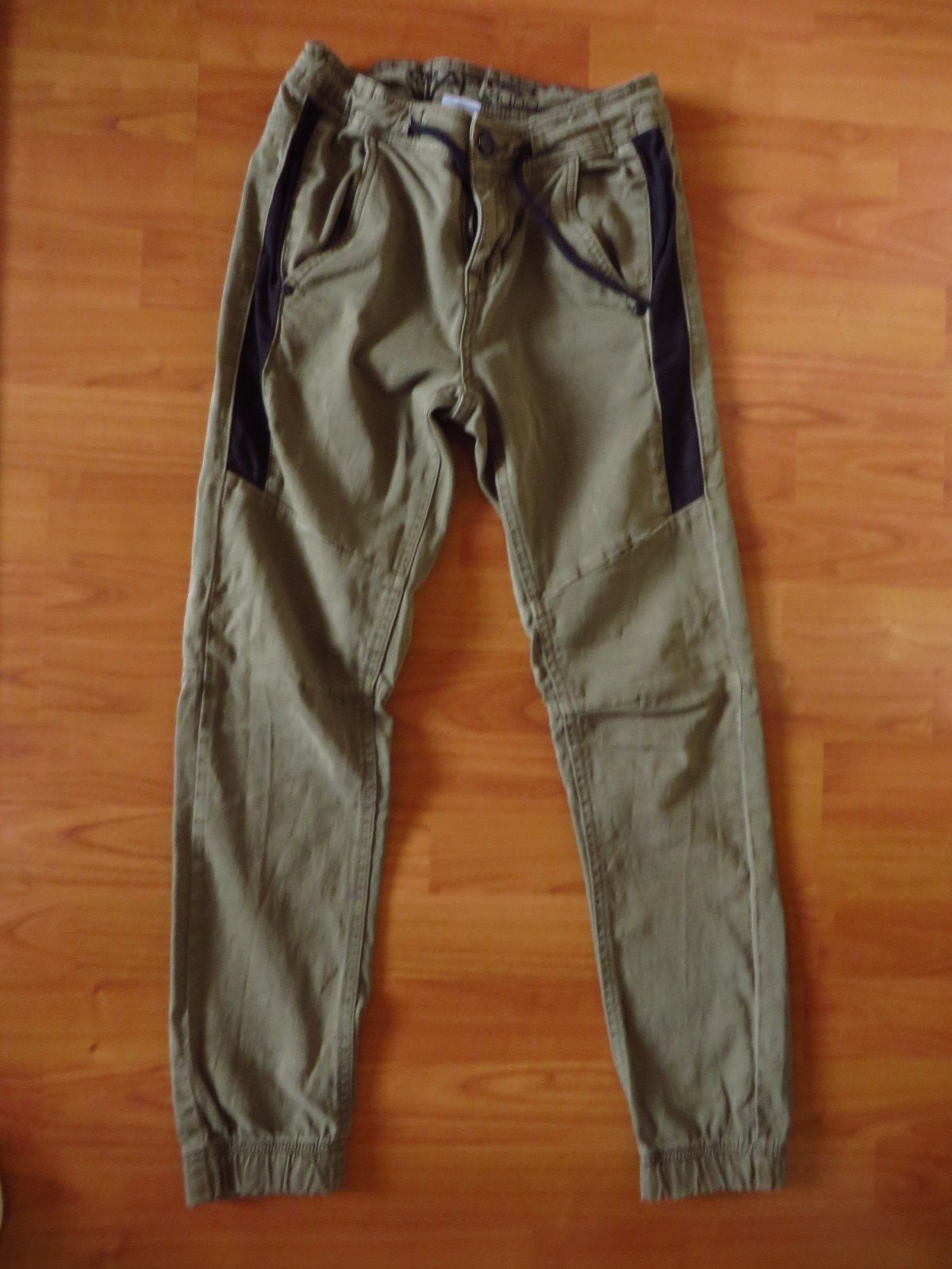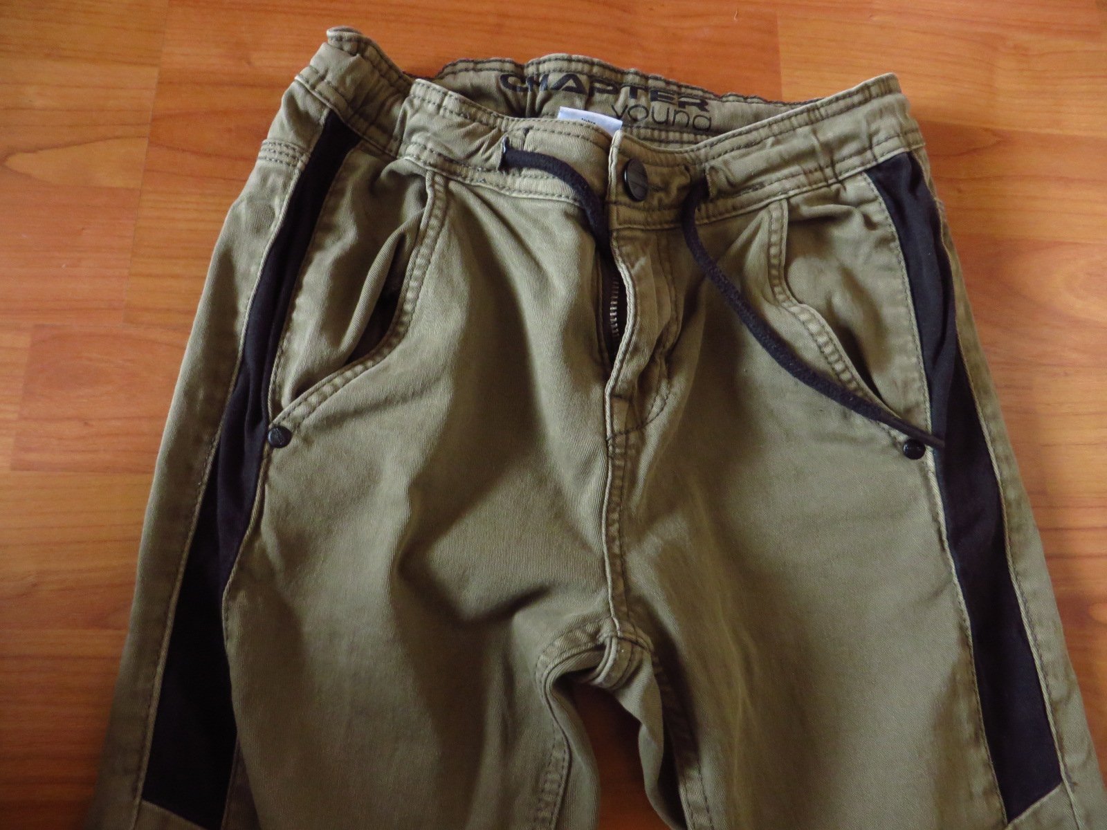 Predám nosené chlapčenské nohavice, veľkosť 152, značka Chapter Young. Sú takej khaki/vojenskej farby, majú regulovateľný pás. Sú v dobrom stave. Celkovú dĺžku majú 92 cm.