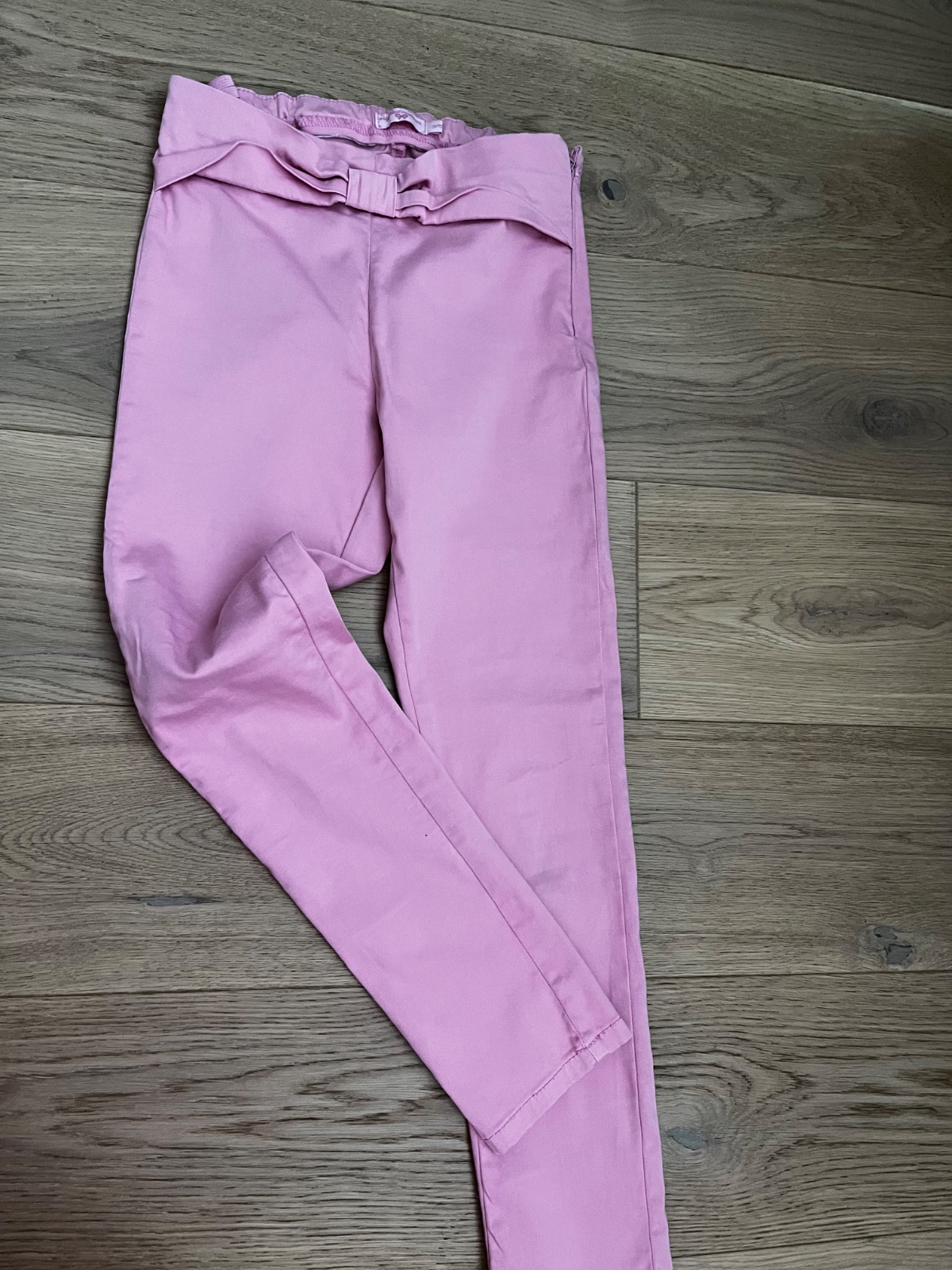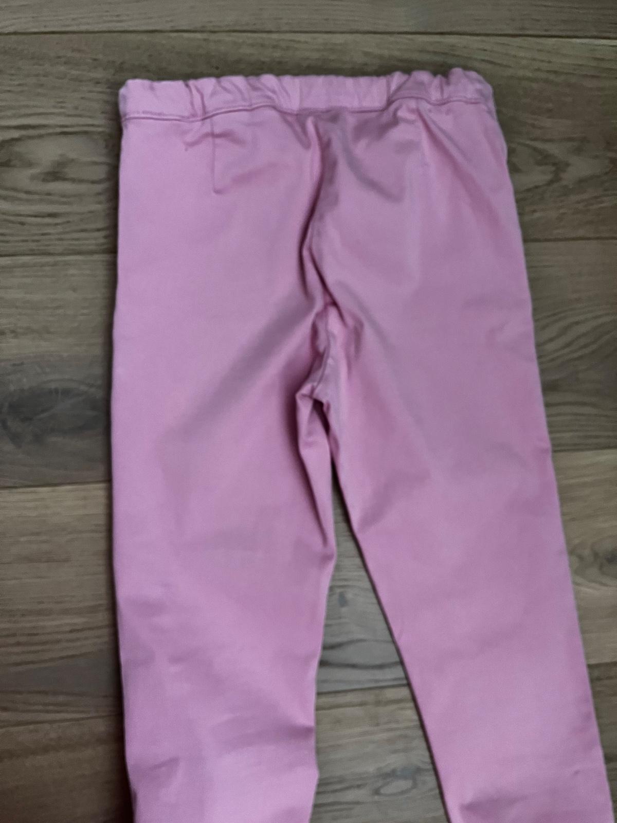 Nohavice -bez poskodenia, flakov a dier, parkrat oblecene prilezitostne cca 4-5x. V pase maju regul gumicky,obidvoje. Svetle ruzove- zn. F&F vel. 146 ( 10-11.tŕok.) - pas 2x 32 v kude- este tros...