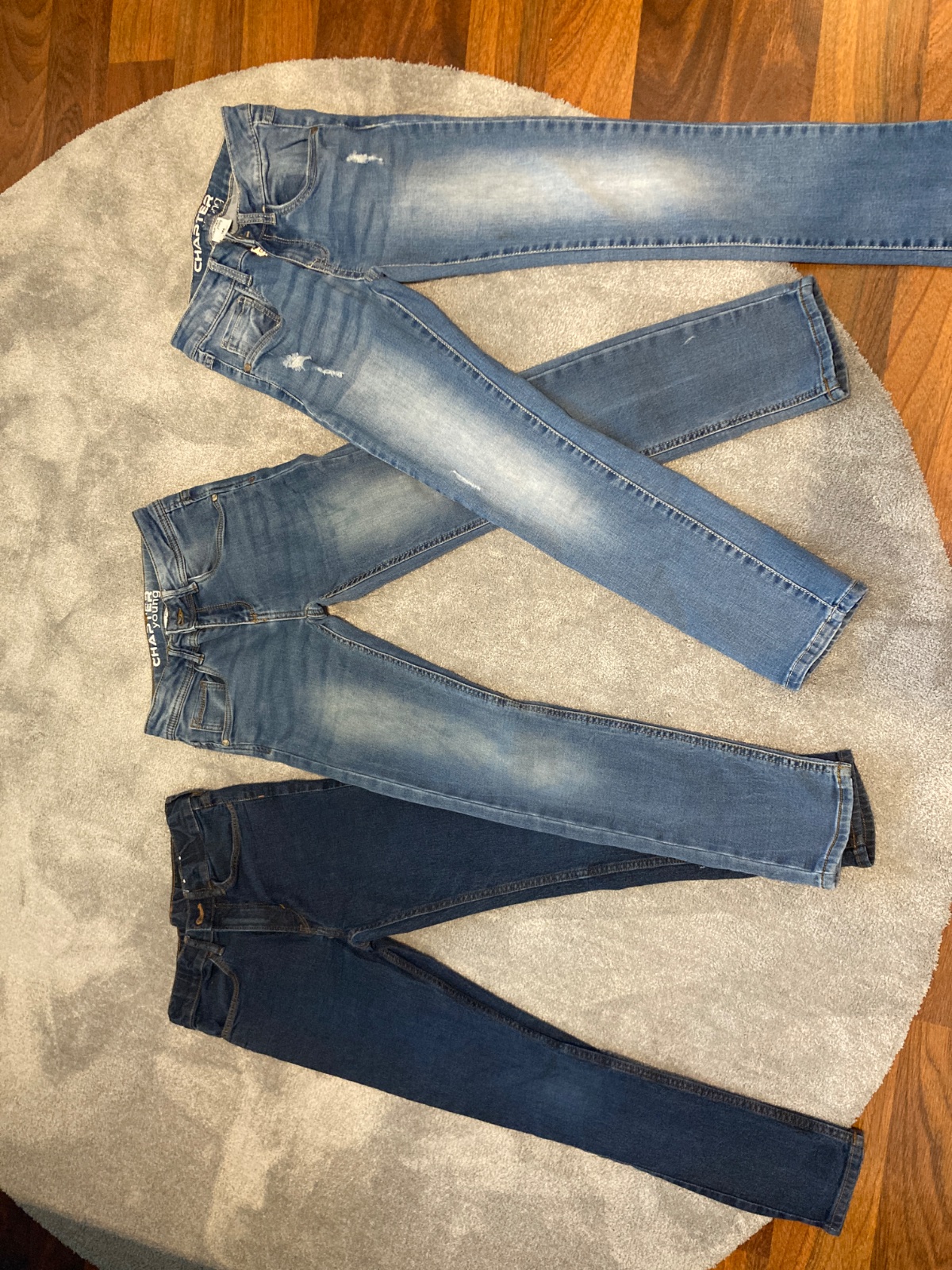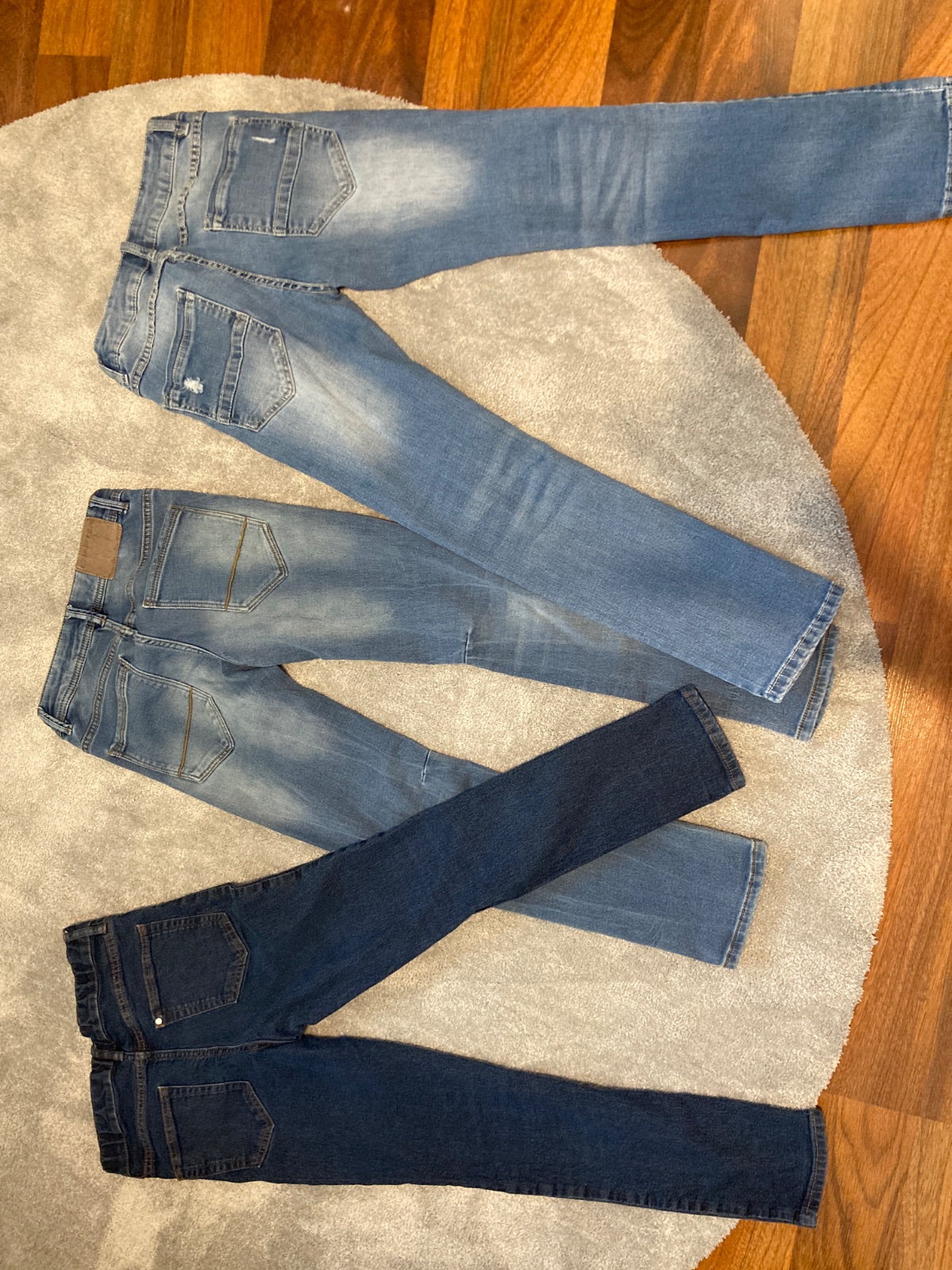 Rifle velkost 146, bez poskodeni, super strih pre utleho chlapceka, pas regulovatelny s gumickou.