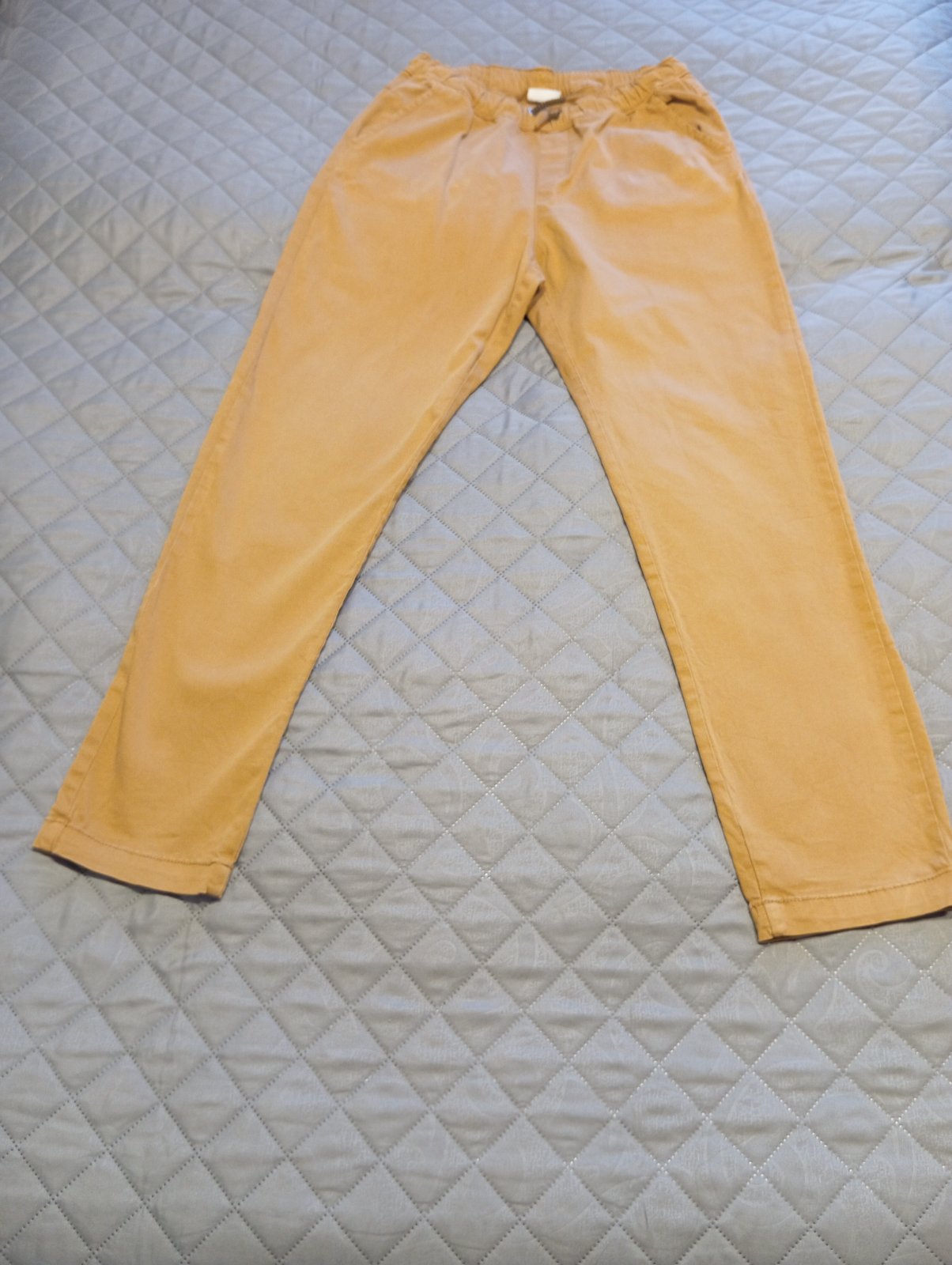 Veľmi pekný nosený stav,kolená nevyšúchané.Nenašla som žiadne poškodenia.Pás je na gumu.