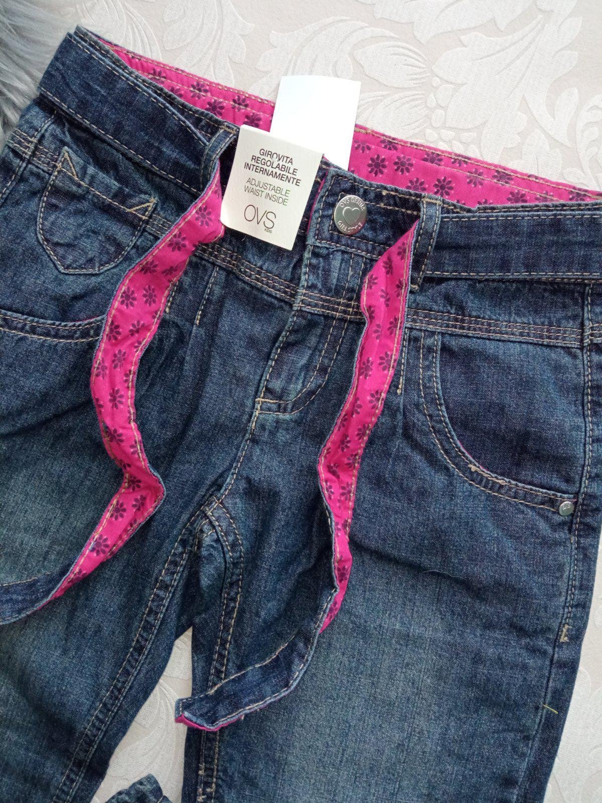 Dievčenské tenké rifle značky OVS, so zapínaním na gombík a zips, dve predné vrecká a dve zadné vrecká, pútka na opasok, nie sú elastické. Majú nastaviteľnú gumu v páse. Farba:tmavomodrá. Materiál: 100%bavlna.
