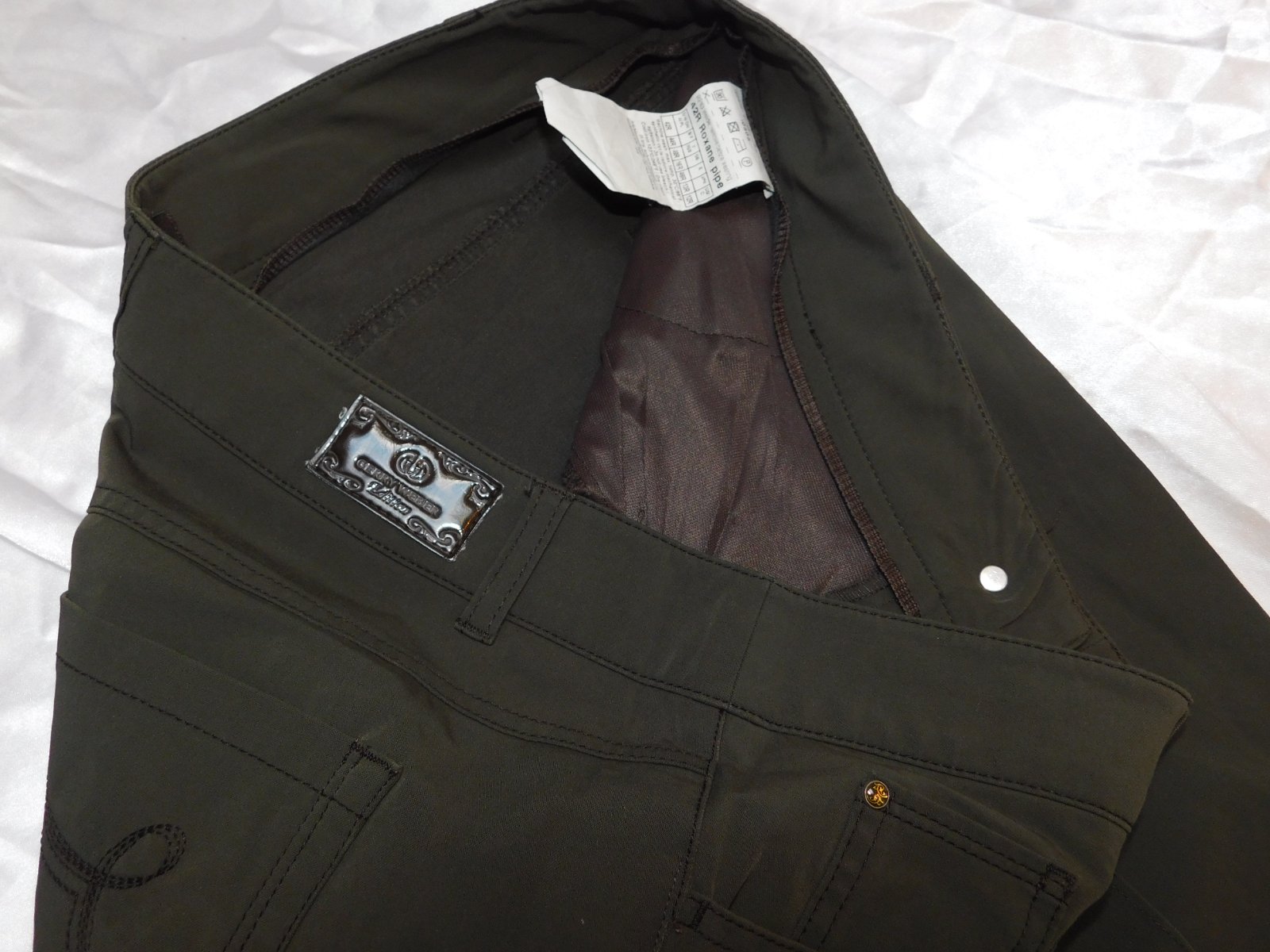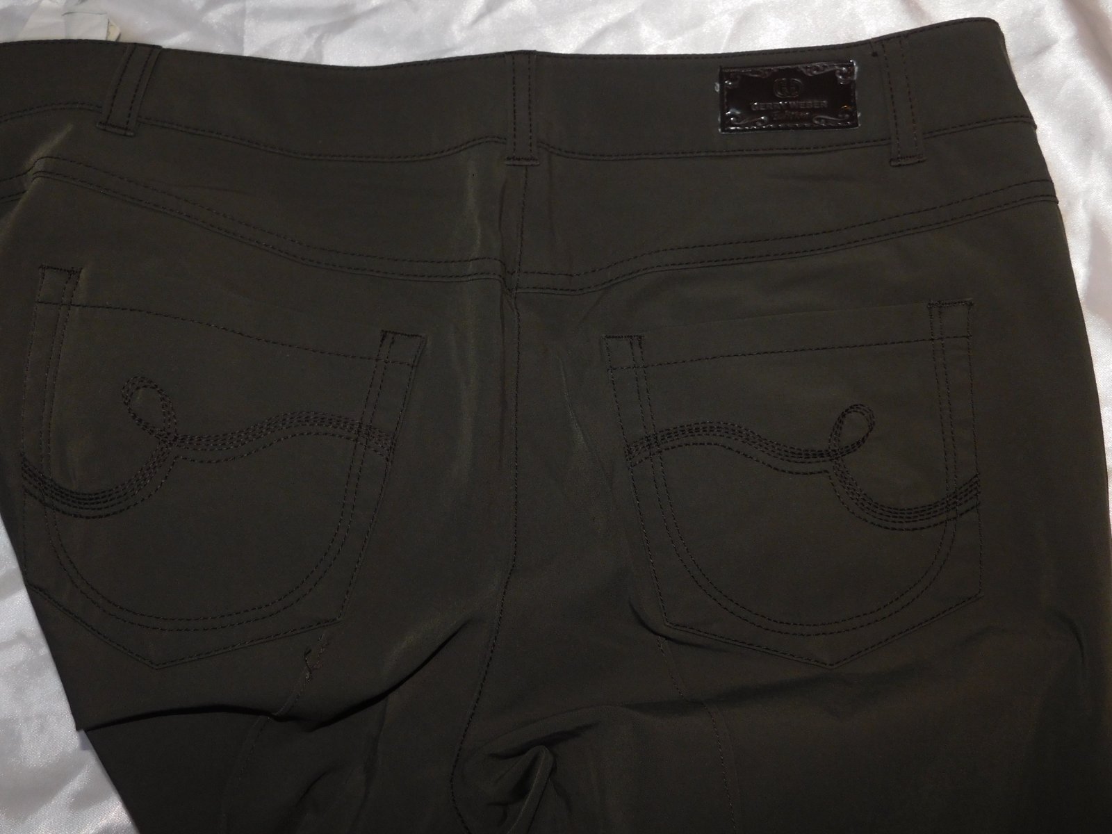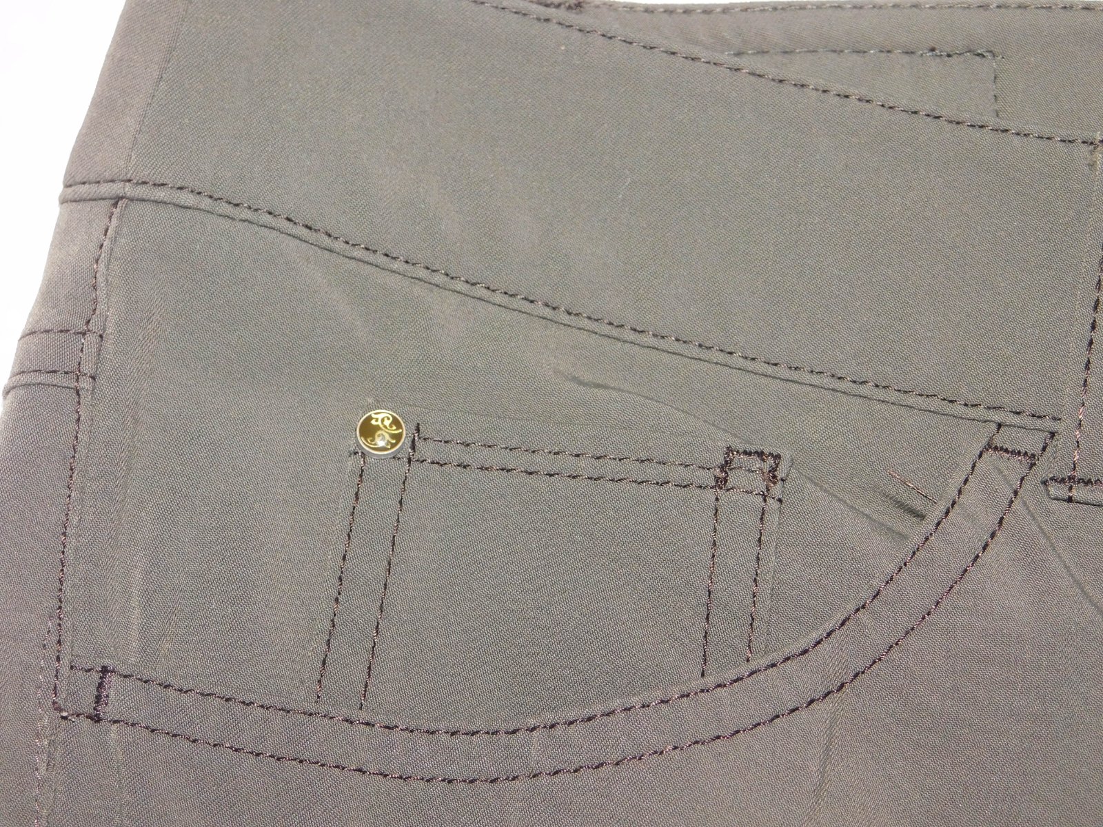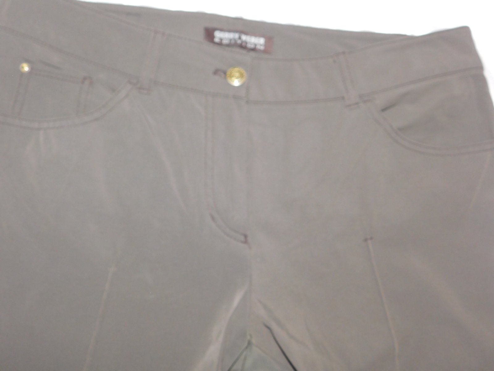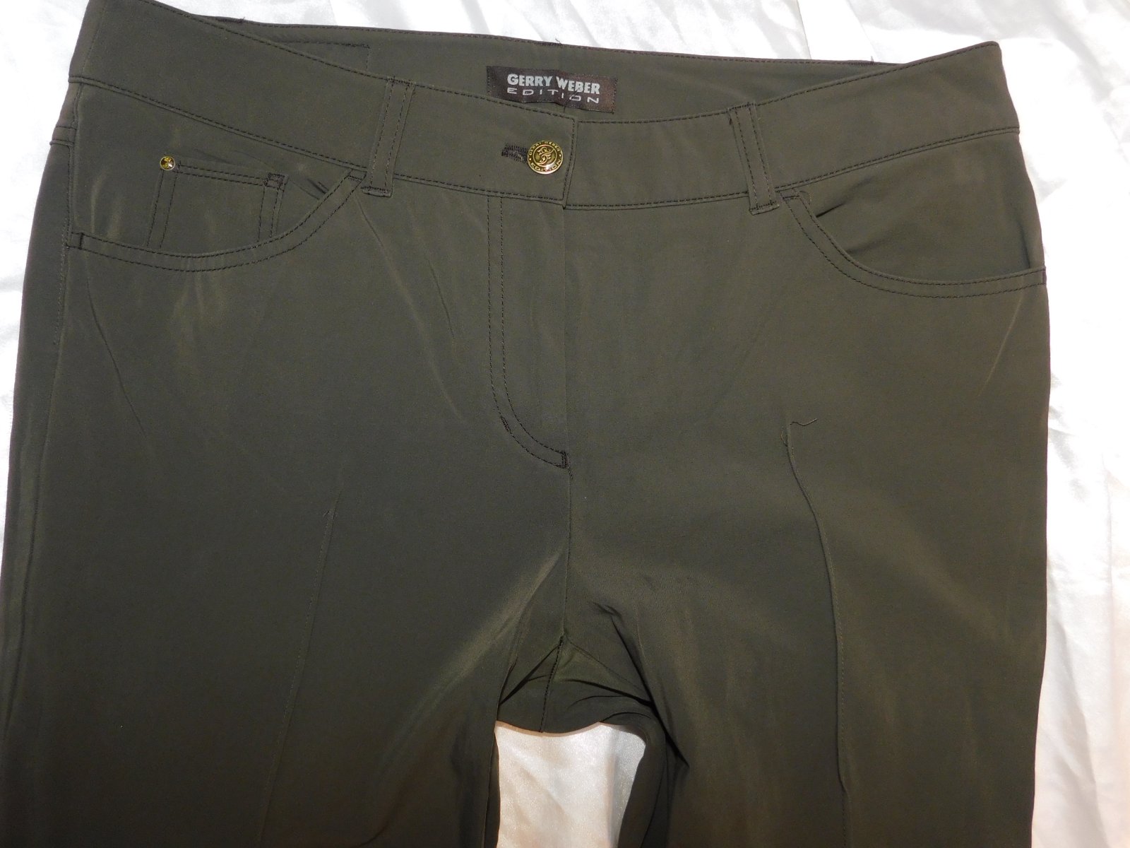 GERRY WEBER Kvalitne damske strečove nohavice tmavoolivovej farby,prisposobive.48%cotton,46%polyamid,6%elastan.super stav. se35