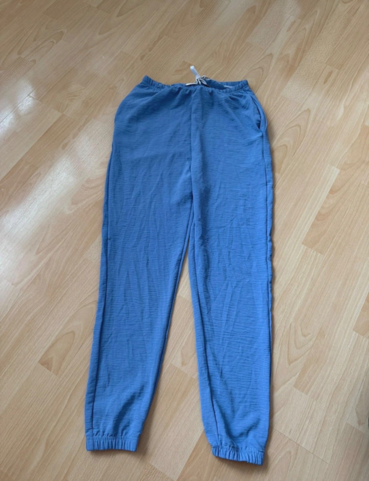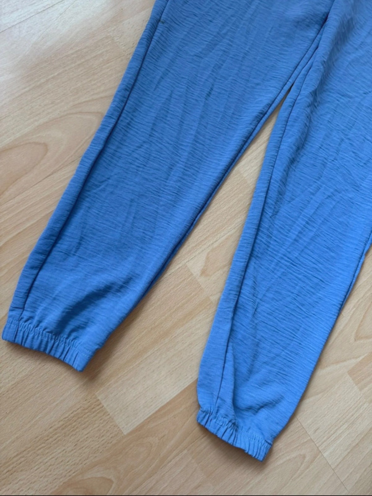 K dispozicii dva kusy vo velkosti 40 a42, 100% bavlna. Super sedia, farba tlmena modra. Cigaretove. Nove zabalene. Strih barrel.
