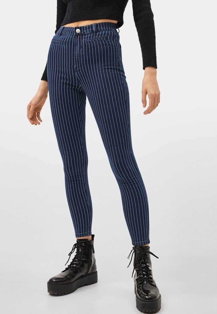 Nové bez visačky, pružné skinny s vysokým pásom, pružné, veľkosť 36, pás 31-38 x 2 cm,d.98 cm, vnútorná dĺžka 70 cm,sedy 27.5/42 cm