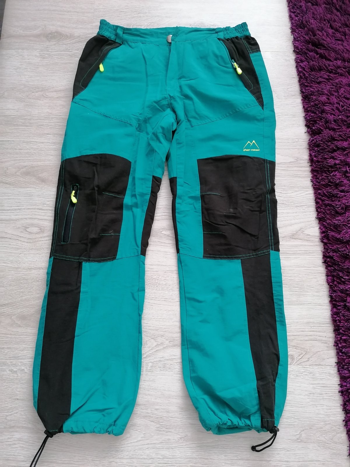Športové nohavice v super stave. Spodok sa dá stiahnuť. Po bokoch gumička v páse,takze ešte povolia vo vnútri jemná látka viď foto. Kľudne aj do zimného počasia, lebo sú podsite látkou. Pas 39cm. Dĺžka 99cm.