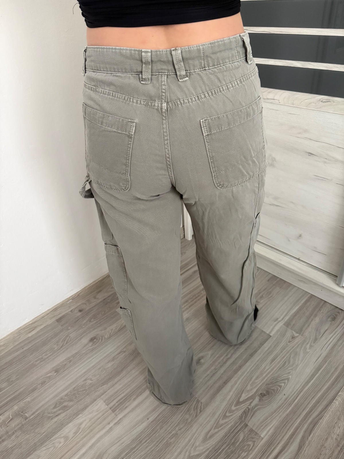 Ako nové, oblečené dvakrát. Voľné. Celková vonkajšia dĺžka: 106,5 cm. Celková vnútorné dĺžka: 81 cm. Pás v kľude: 76cm. Vpredu tri vačky, vzadu dva. Z vnútornej strany bavlna