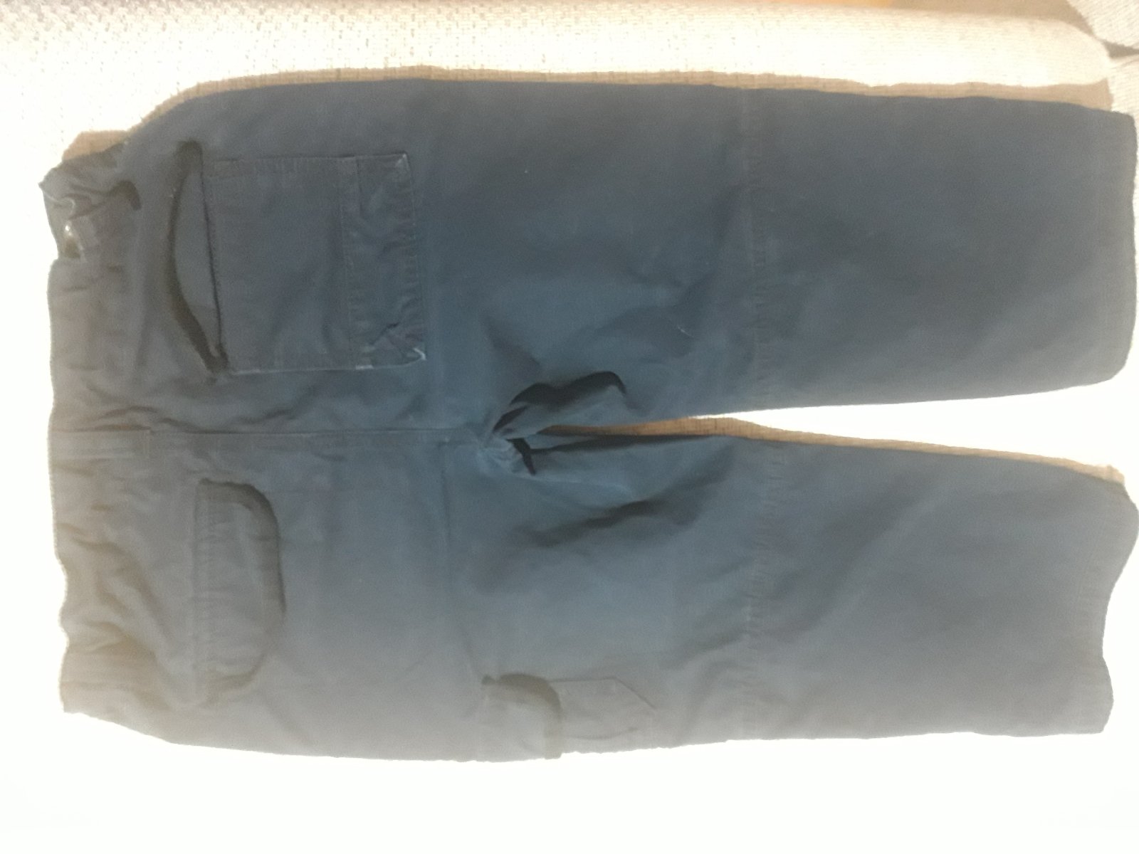 Nosené, tenšie,pás sa dá nastaviť, nie sú elastické, málinko vyblednuté od prania, ináč bez poškodení, veĺkosť písaná 4-5rokov