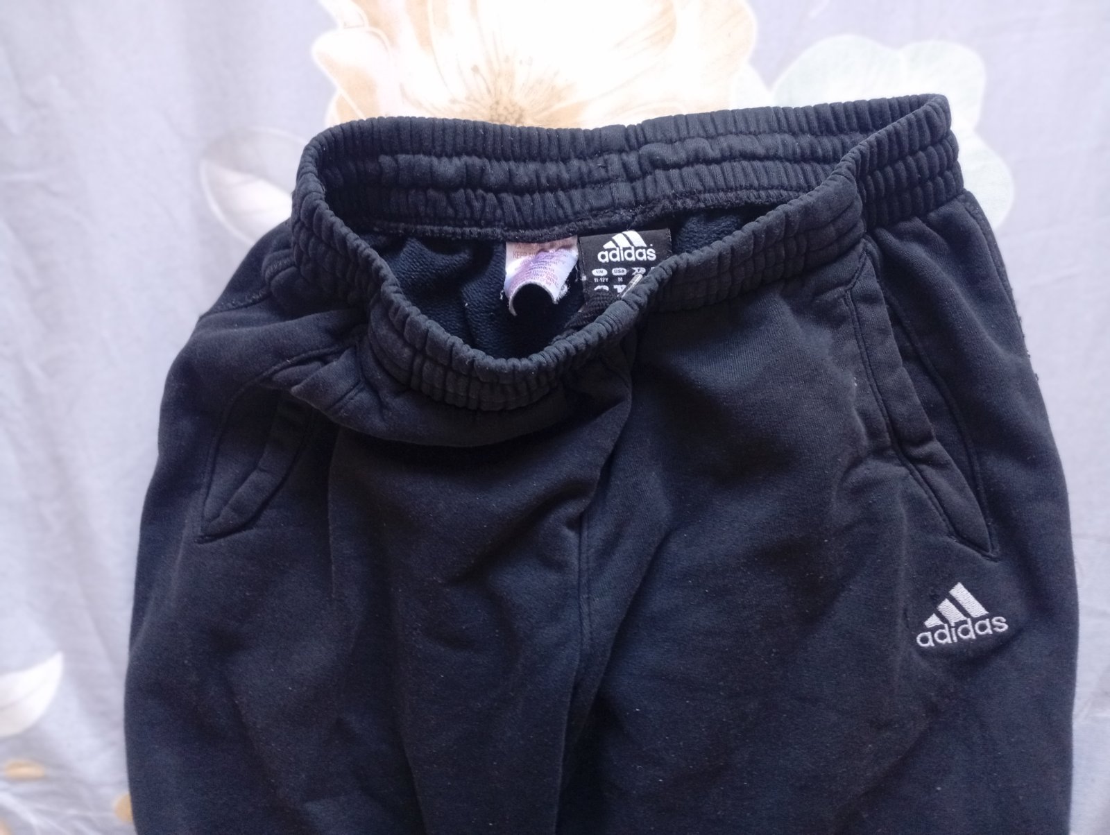 Predám zachovalé čierne tepláky na gumu č.152, dole tiež ukončene gumou.Adidas