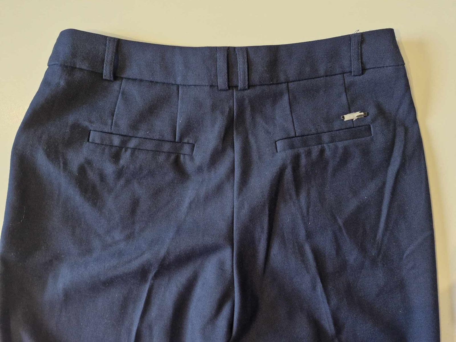 Nenosene, iba vyskusane Vel. 38 Farba: tmavomodrá Strih: skinny fit Dĺžka: regular Výška pása: stredne vysoký pás Zapínanie: zips a gombík Materiál: 67 % bavlna, 30 % polyester, 3 % elastan Strih:...