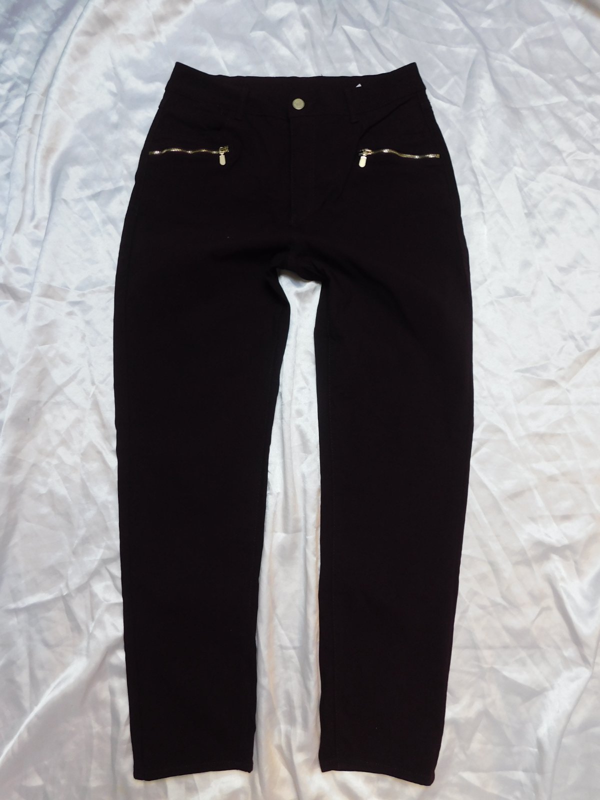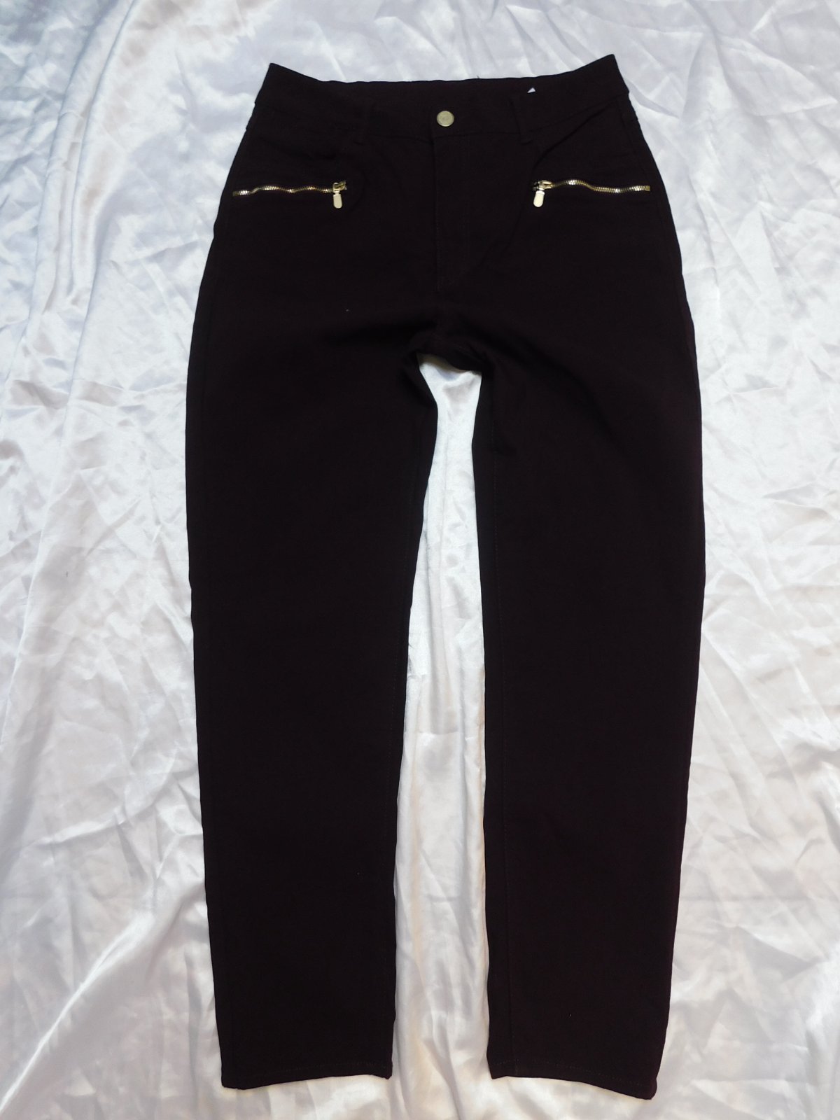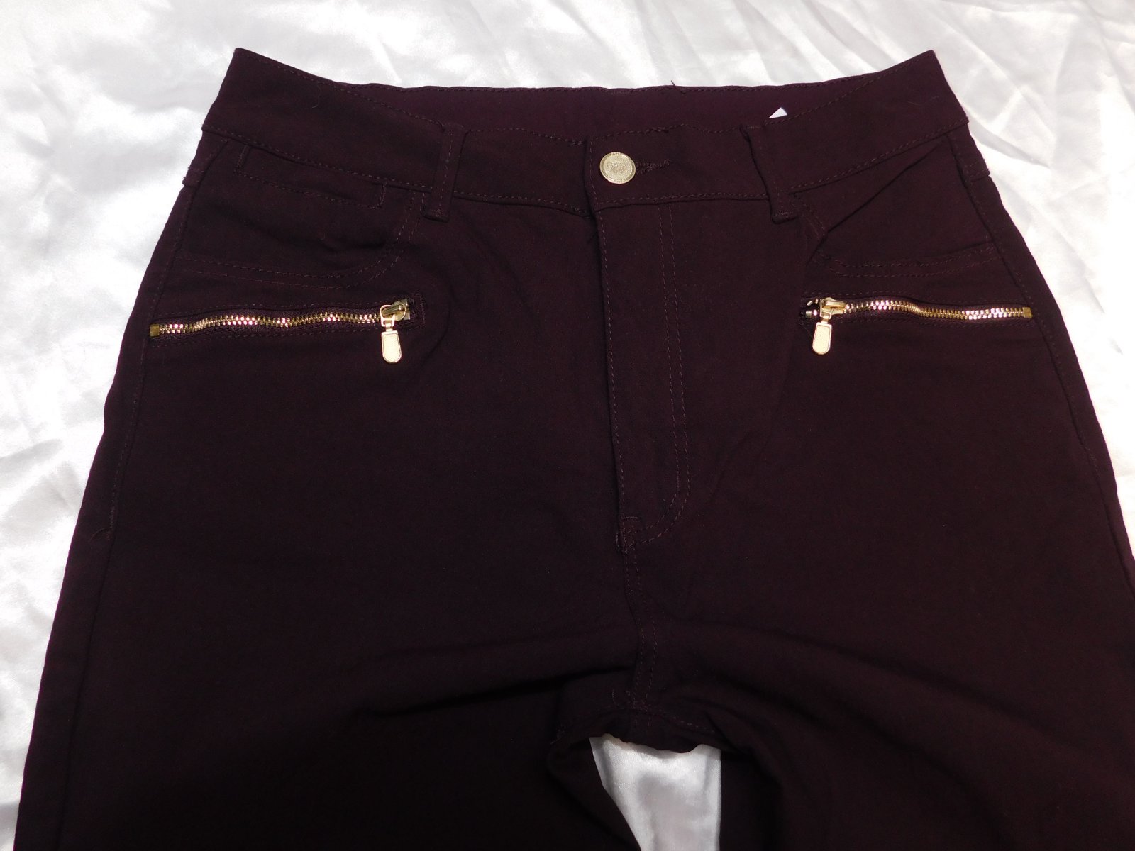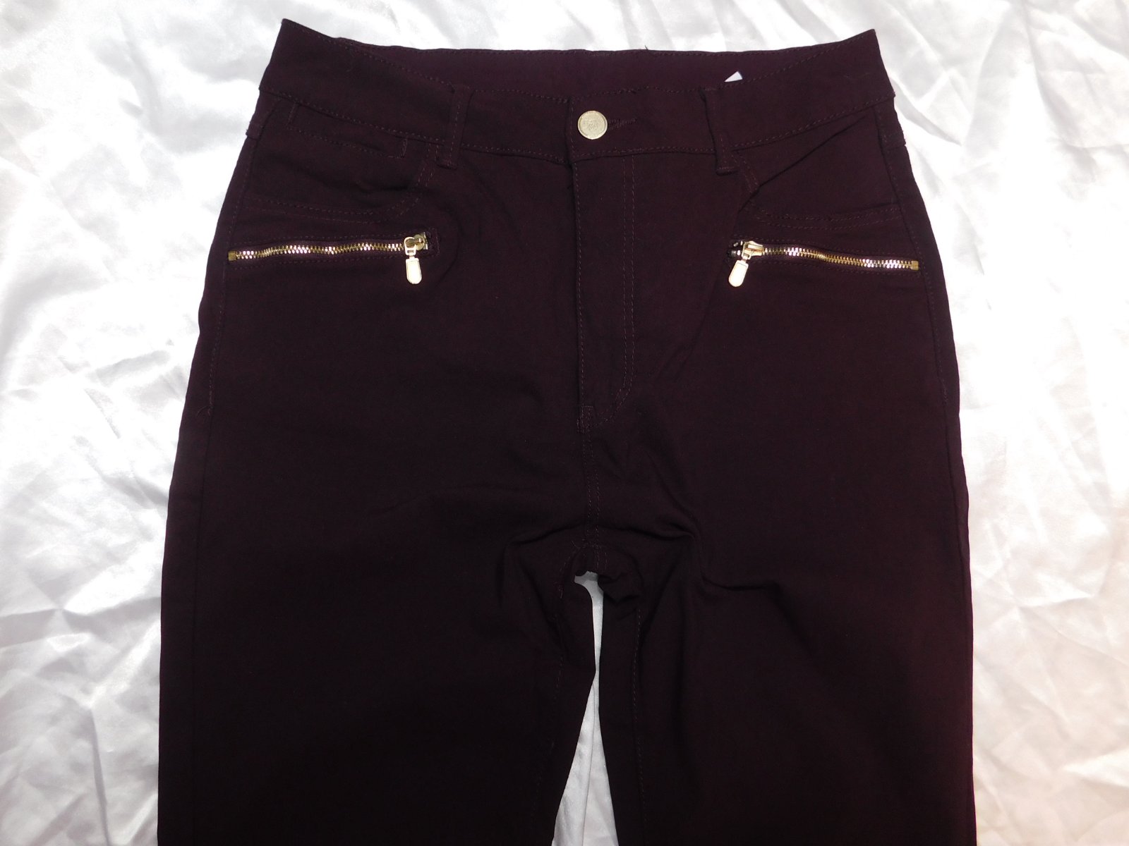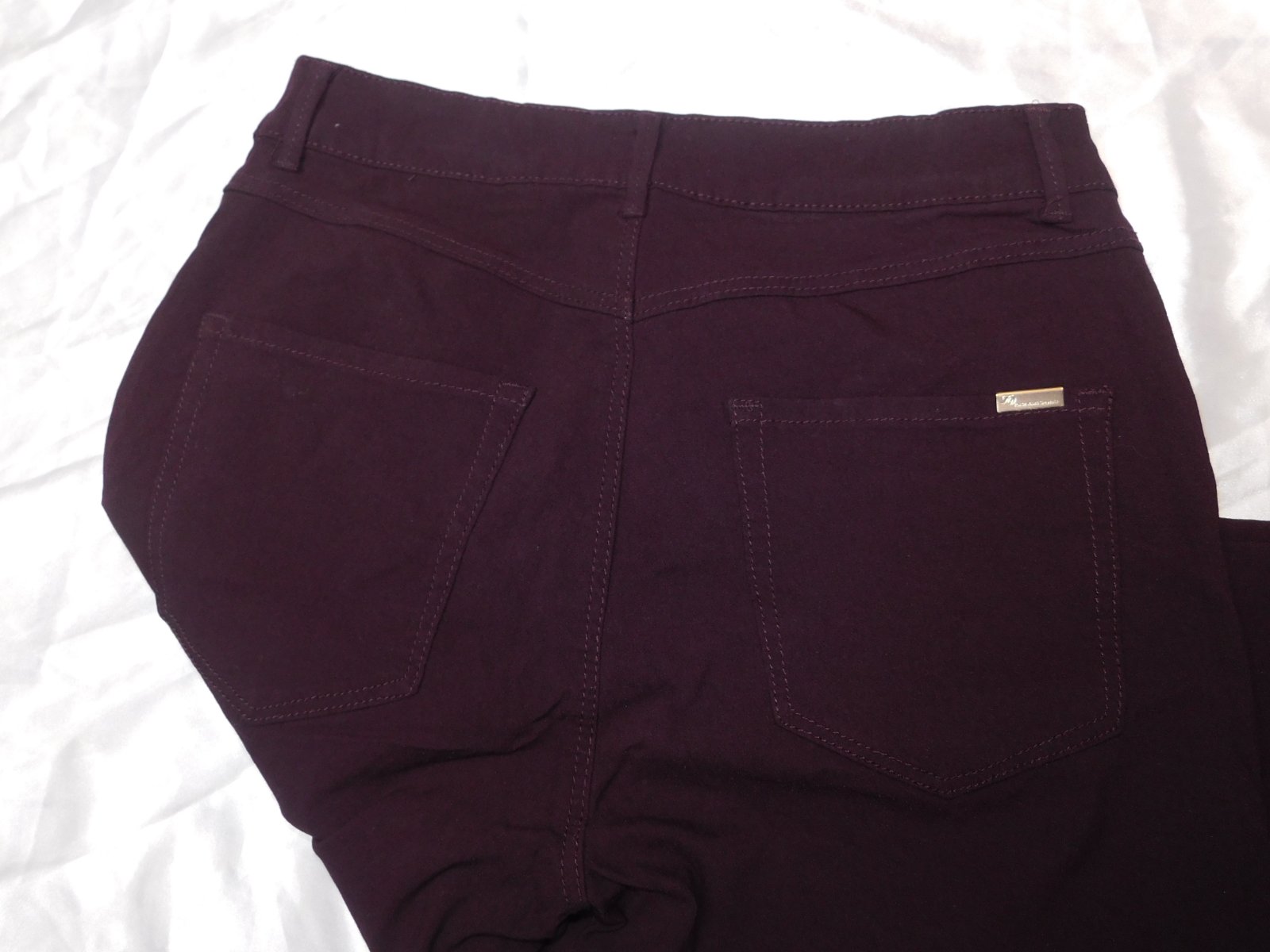 FLASH WOMAN Damske kvalitne strečove rifle bordovej farby,prisposobive.77%viskoza,20%polyester,3%elastan.ako nove. se35