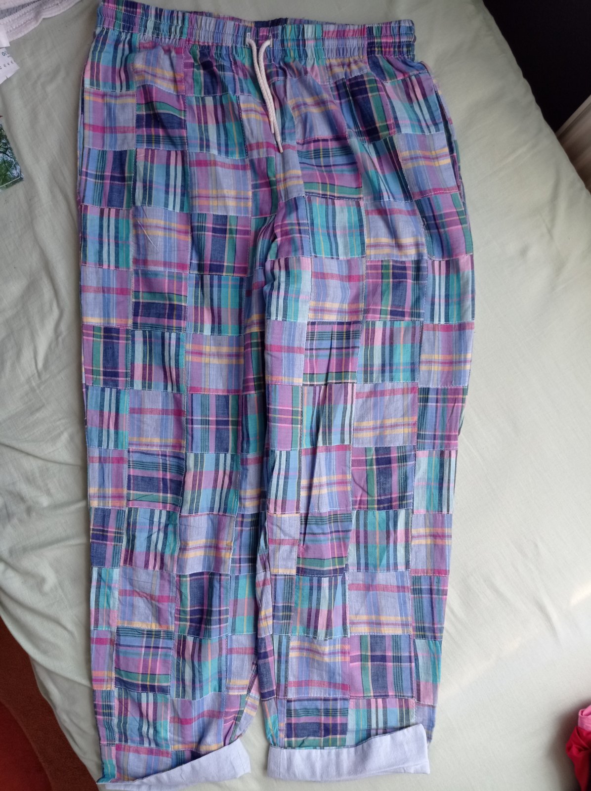 Predám tieto nohavice vhodné na leto, nosia sa ohnuté pár cm nad kotníky, viz foto . Veľkosť 42/44, dva bočné vačky, pás na gumu 39 - 49cm, ich dĺžka s vyhnutým spodkom+-93cm.