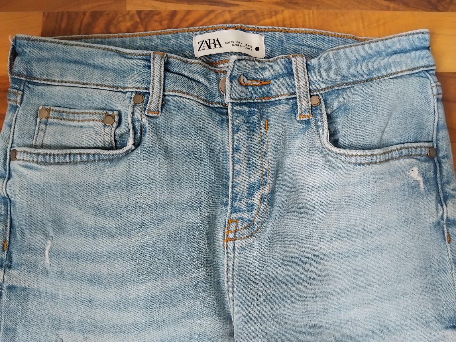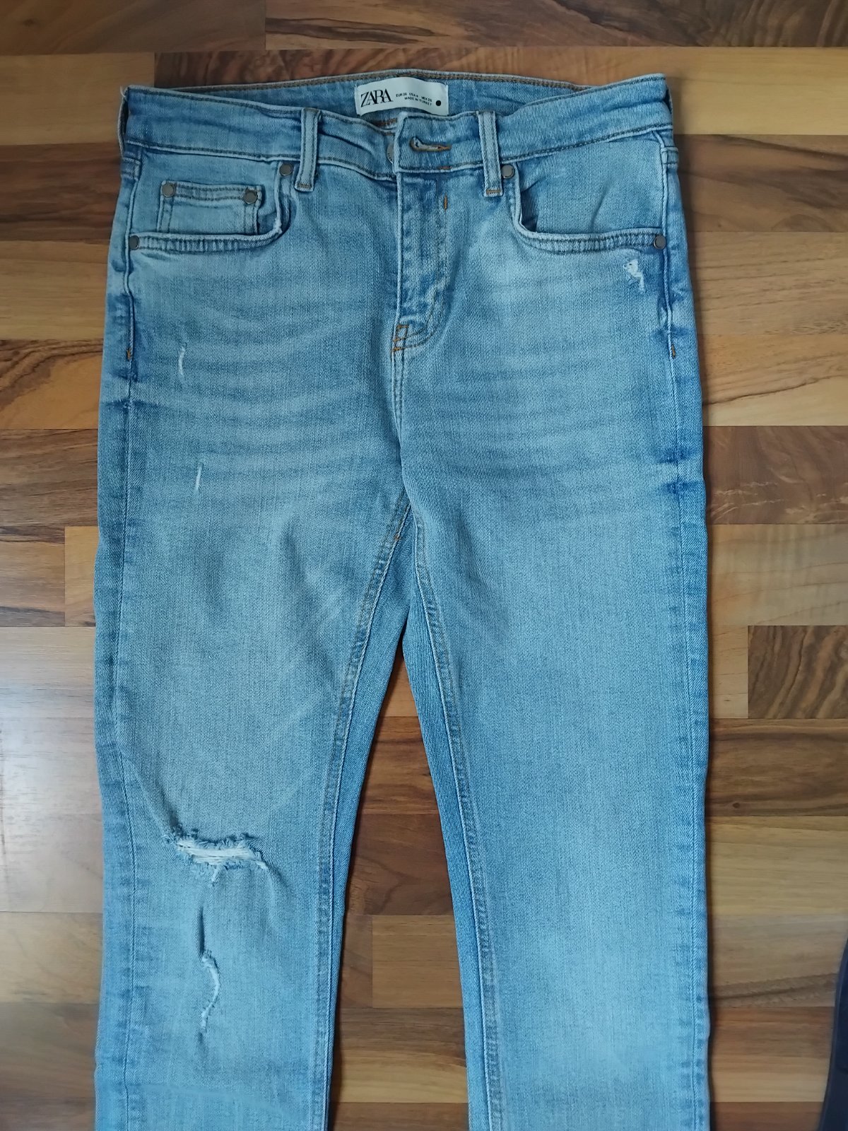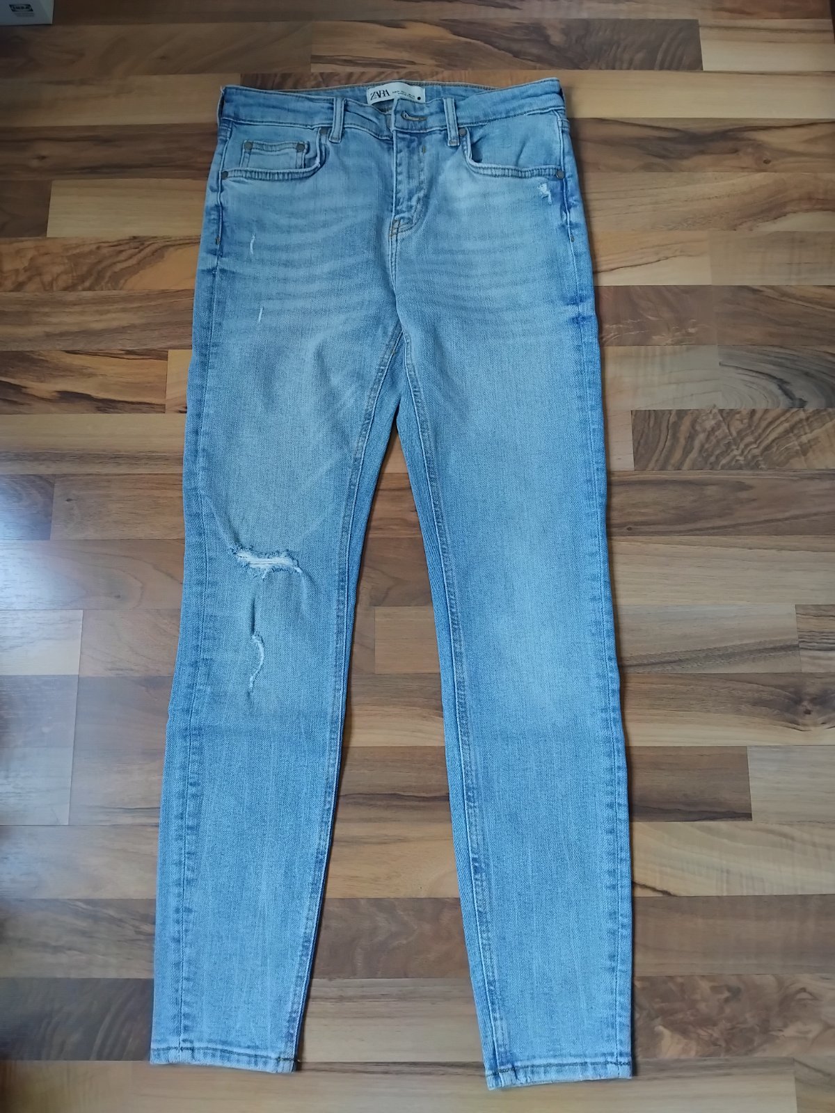 Skinny rifle Zara, veľkosť 36, stredne vysoký pás (midwaist), rozmery: šírka v páse 36cm, vonkajšia dĺžka 94 cm, vnútorná dĺžka 72 cm, pár x oblečené - top stav, pôvodná cena 25 EUR