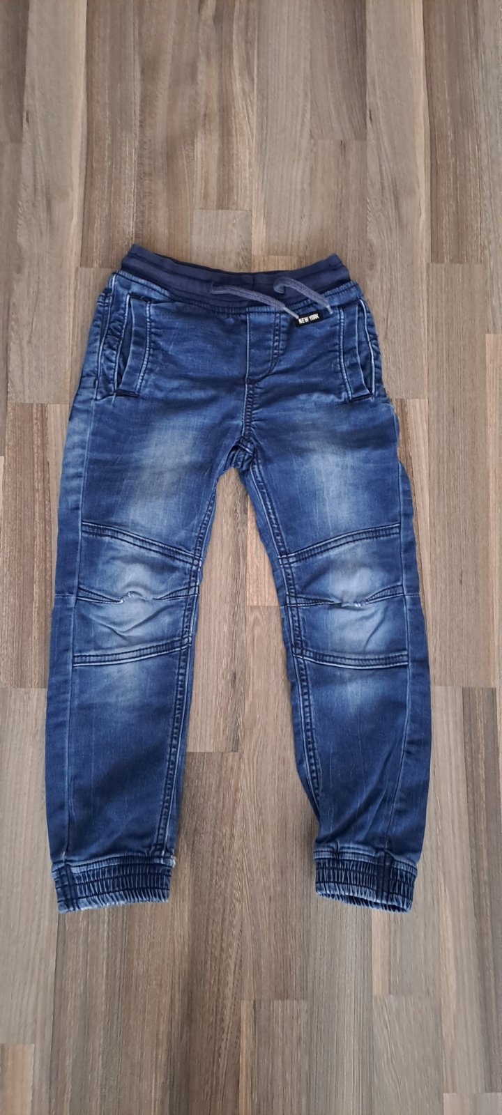 RIFLE, zn. DOPODOPO (Takko), veľ. 116: Ponúkam na predaj rifle, modrá farba, mäkký materiál, v páse gumička, dole patent, veľkosť 116 (5-6 rokov). Na kolienkach menšie zašité zatrhnutie, nič hrozné. Rozmery: dĺžka 64 cm, od rozkroku: 44 cm. Cena 1€.
